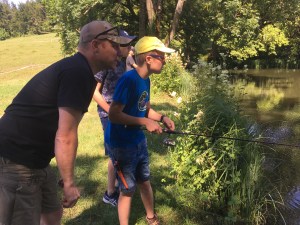 Bei unserem letzten Treffen vor den Sommerferien drehte sich alles um den Fisch und das Fischen. Michi Schellenberg, der Präsident des Fischervereins am Pfäffikersee hat uns an seinen Weiher eingeladen. Normalerweise darf man dort nicht fischen, für uns hat er eine Ausnahme gemacht! Danke, Michi! 🙂