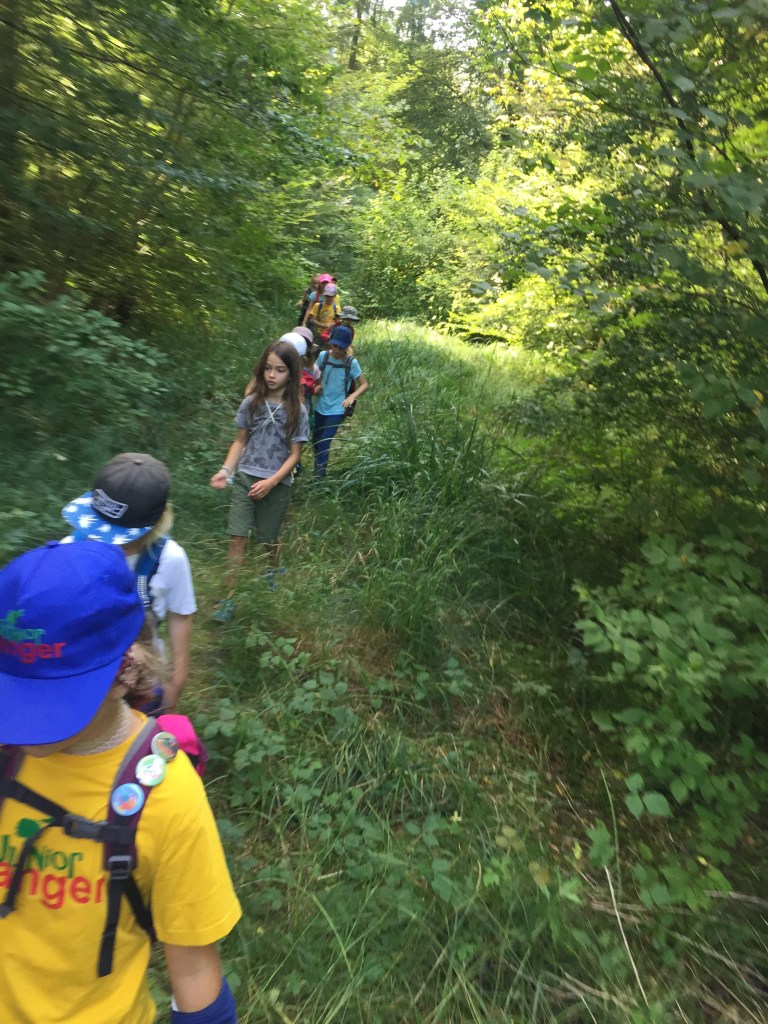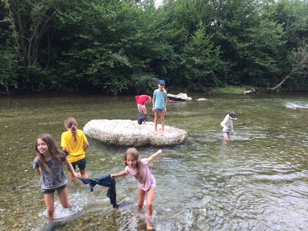 Den Rückweg zum Ausgangspunkt mussten die Kinder selber suchen..sie waren sich nicht so einig, welches der kürzeste oder spannendste Weg ist. …dann aber fanden sie zurück an die Töss, und endlich konnten wir die Schuhe, manche auch die Hosen, ausziehen und uns im kühlen Nass erfrischen, Steine erklimmen und durch die Strömung waten..oh, ein Eisvogel flog vor unserer Nase vorbei! und was tummeln sich da für kleine Fische im seichten Wasser? Die Kinder sind fasziniert von dem vielen Leben an diesem schönen Ort. Doch schon ist es 17:00 Uhr und die Eltern sind da…schade müssen wir unser schönes Bad schon beenden. Ein erfahrungsreicher, warmer, fröhlicher Junior Ranger Nachmittag ging dem Ende zu..