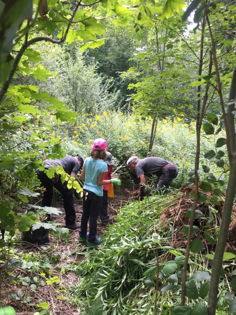 Nach einer Einführung in die Neophytenkunde, machten wir uns daran, diesen Goldruten samt den Rhizomen (altgriechisch:“eingewurzeltes“) den „garauszumachen“..um mehr Platz für unsere einheimischen Pflanzen zu schaffen.
