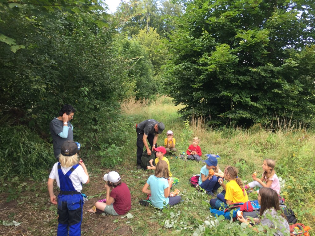 Oh was ist den das? Eine Kiste mitten im Goldrutenfeld wurde entdeckt! hmm und was ist da drin, feine Zopfigeli und Schoggistängeli..der Zvieri kann nun nicht mehr warten…