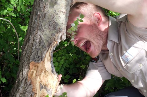 Nach stundenlanger Analyse haben wir festgestellt, das war nicht der Biber. Also ging es weiter mit unserer anstrengenden Suche. Weit und breit keine Spur vom Biber. Oder doch? Warum freut sich Jakob so?