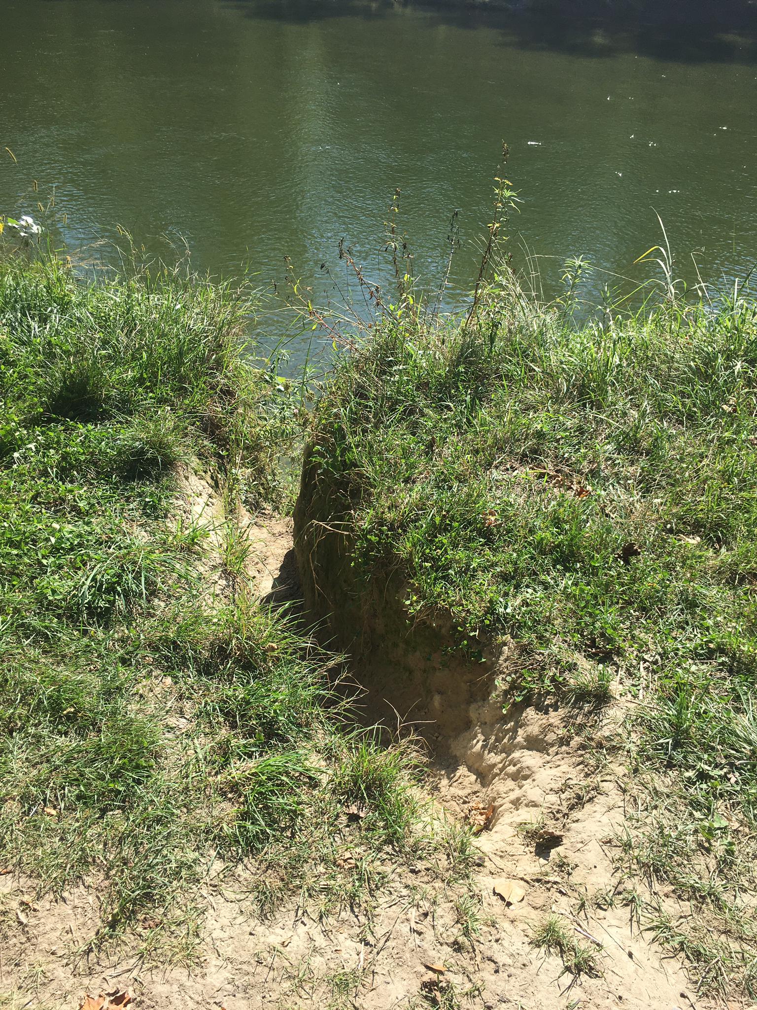 Biber graben sich von der Flussseite aus ans Ufer um unbeschwerter zwischen Wasser und Land wechseln zu können, sowie Ihr gefälltes Holz einfacher in und aus dem Fluss transportieren zu können.