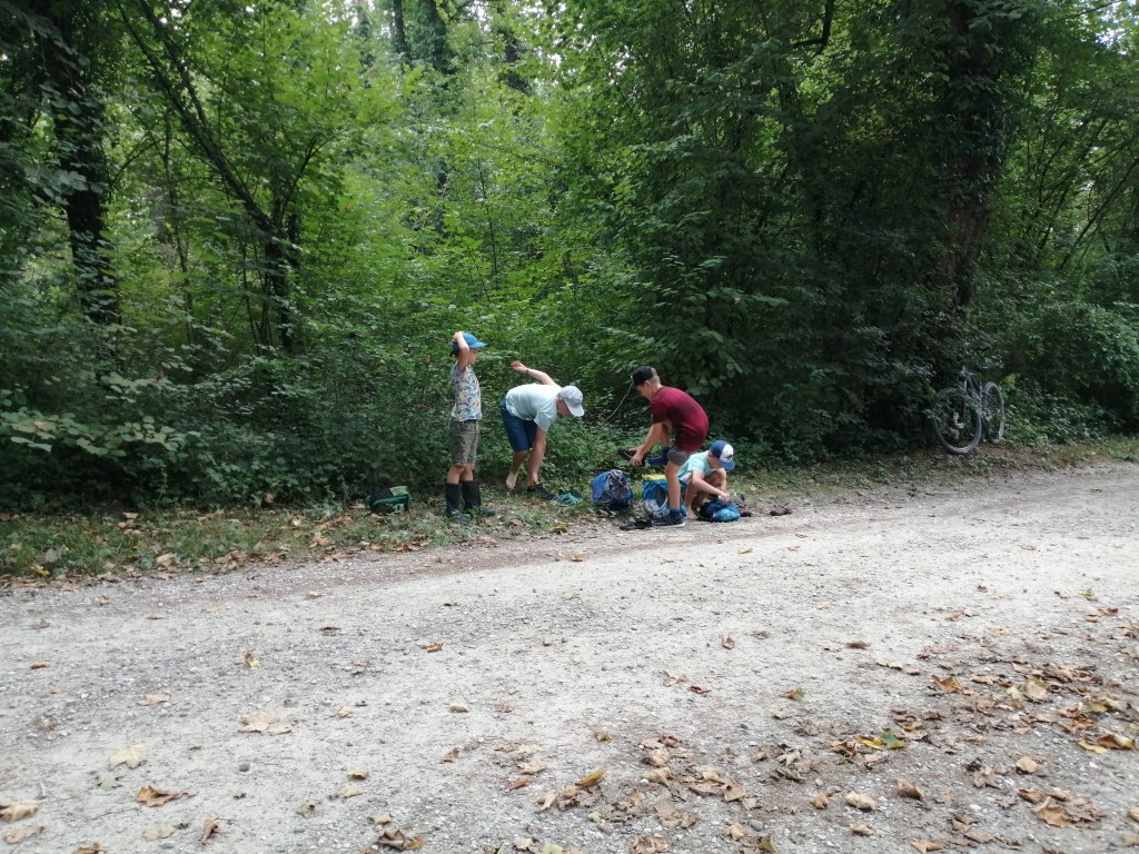 Nachdem alle angekommen waren, wurden sogleich Sandalen und Gummistiefel angelegt. Wir sind ab dem Parkplatz Ellikerbrücke (https://goo.gl/maps/n1azU8vedUJJZx7NA) ,dem Bindepunkt zwischen Flaach und Ellikon am Rhein, losgegangen. Von dort aus war geplant die Thur hinaufzulaufen. Nach einem kleinen Thur 1 x 1 fürs Allgemeinwissen und einem Sicherheitstraining für Fliessgewässer brannten die Junioren schon drauf endlich los zu können.