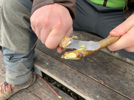 In diesem Jahr feiern wir 10 Jahre UNESCO Welterbe „Prähistorische Pfahlbauten um die Alpen“. Aus diesem Grund werden wir uns in nächster Zeit immer wieder der Steinzeit widmen. Und wir haben die Pandemiebedingte Zwangspause genutzt und uns intensiv mit steinzeitlichen Jagdtechniken auseinandergesetzt. Wie war das wohl damals? Was ist eine Speerschleuder? Wofür braucht man das und wie baut man die? Ranger Jakob und ich wollten das ganz genau wissen und haben das mal ausprobiert. Zuerst haben wir uns ein original Steinzeitmesser mit Feuersteinklinge gebaut.