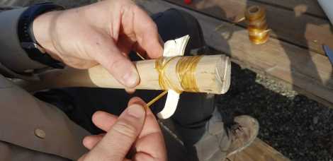 Und damit das hält, haben wir es mit Tiersehnen fixiert. Aber wir haben noch viel mehr Bauweisen ausprobiert und zum Schluss waren wir gar nicht mehr zu bremsen …