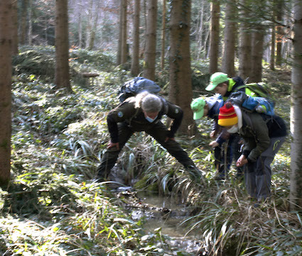 Beim kleinen Bächli angekommen, geht es auf die Suche nach Laich…