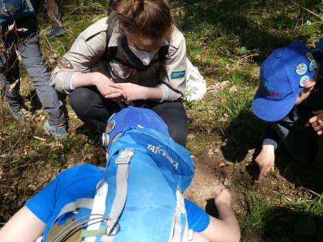 Aber auch eigene Spuren haben wir hinterlassen und haben unser Brenneisen mit dem Junior Ranger Logo ausgiebig getestet.