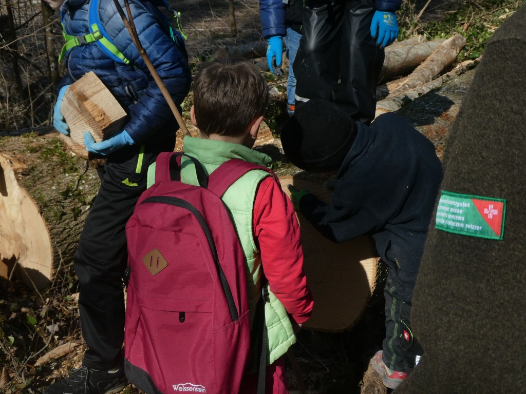 Nach der anfänglichen Begeisterung ging es weiter in den Wald. Hier wurden uns die grundlegenden Fragen geklärt, was einen gesunden Wald ausmacht, warum er als solches nötig ist, um gewisse Ökosystemleistungen zu ermöglichen und uns somit auch das Leben, was wir Menschen gewohnt sind, ermöglicht. Wie erkennt man eigentlich das Alter eines Baumes? «Boah, Dario, du Opfer, ist ja ganz einfach, man zählt die Ringe Mann!». Ok, Ok! Mea culpa, meine Unwissenheit kleine Bros. So zeigten mir die Junioren also, wie man richtig Ringe zählt.