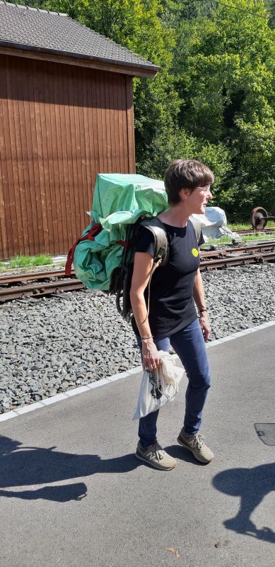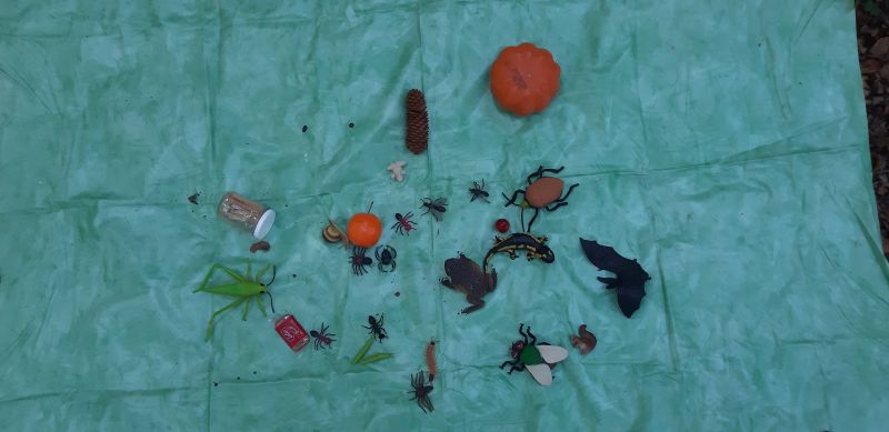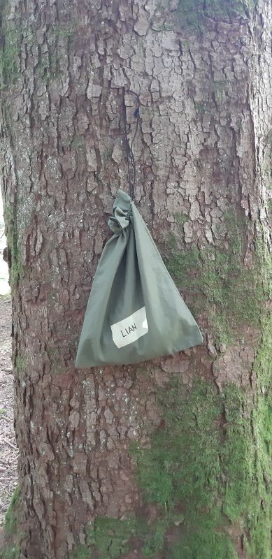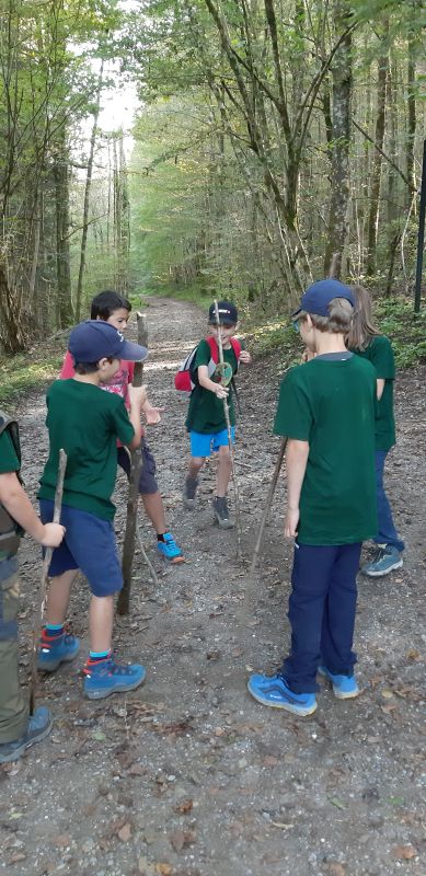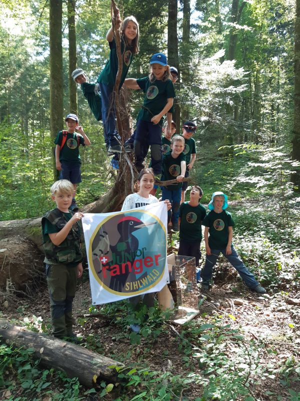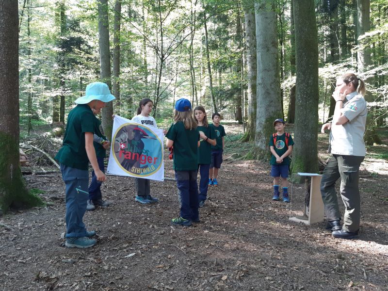 Wir balancieren über unseren Baumstamm zu unserem Platz. Dort liest uns Rangerin Nicole ein Rätsel vor.