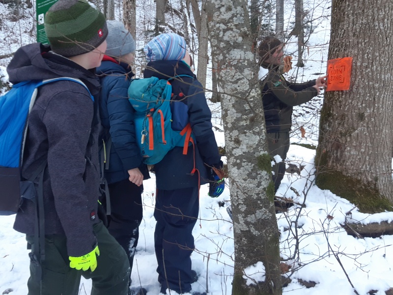 Da es schon lange der Wunsch der Junior Ranger war einmal in die Kernzone zu gehen, haben wir das schöne Winterwetter genutzt, um eine kleine Runde durch die Kernzone zu machen. Der gegangene Weg auf der Karte war nur 28 cm in der Realität aber 3,3 km lang.