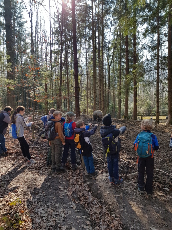 Nach klaren Verhaltensregeln und sämtlichen geleerten Jacken-, Hosensäcken gings zu Besuch in die Wildschwein-Anlage.