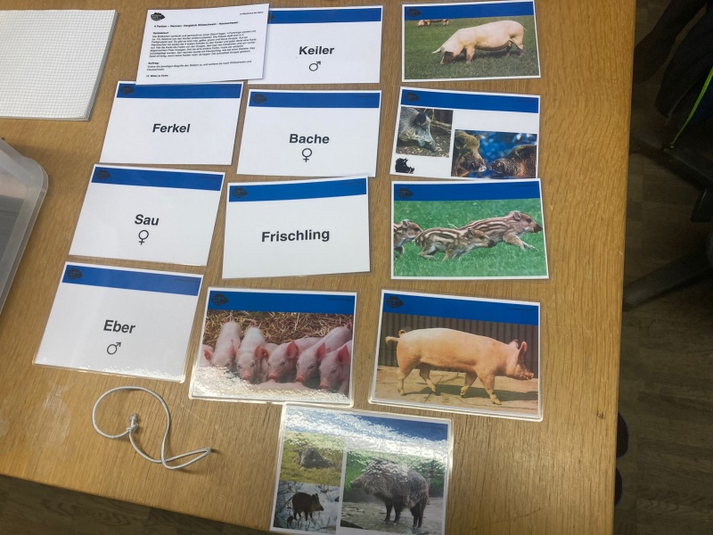 Nach dem Tasten von Fell, Schädel und Hauern nahmen wir noch Nahrung und Lebensraum unter die Lupe. Mit lustigen Folien vor den Augen versuchten wir nachzuahmen, wie „gut“ Wildschweine wirklich sehen können.