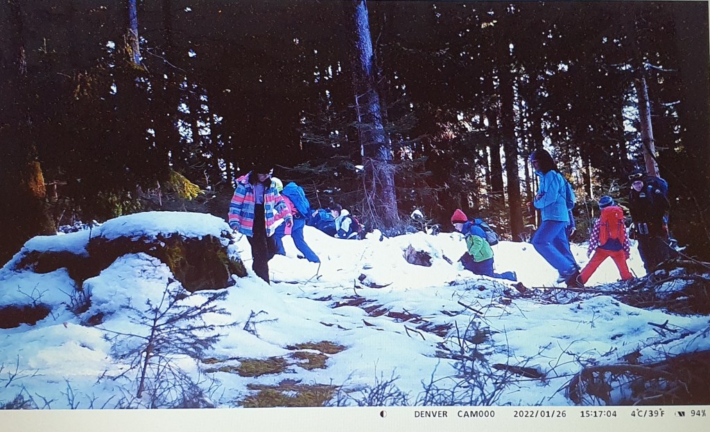 Wir entdeckten verschiedene Spuren im Schnee und Wald…