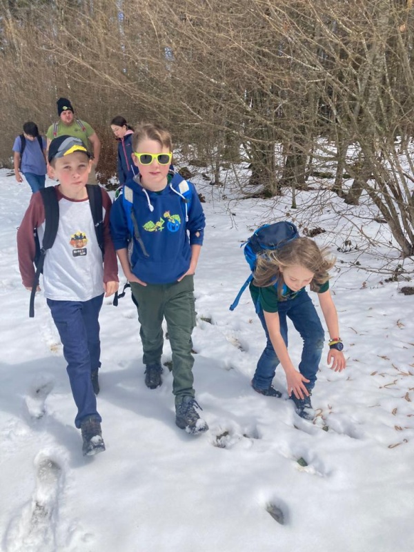 Vom Albispass ging es über einen wunderschönen Trampelpfad auf die Albisboden-Wiese, wo noch die letzten Schneereste lagen. Wir reinigten die Feuerstellen und räumten illegale Feuerstellen ab.