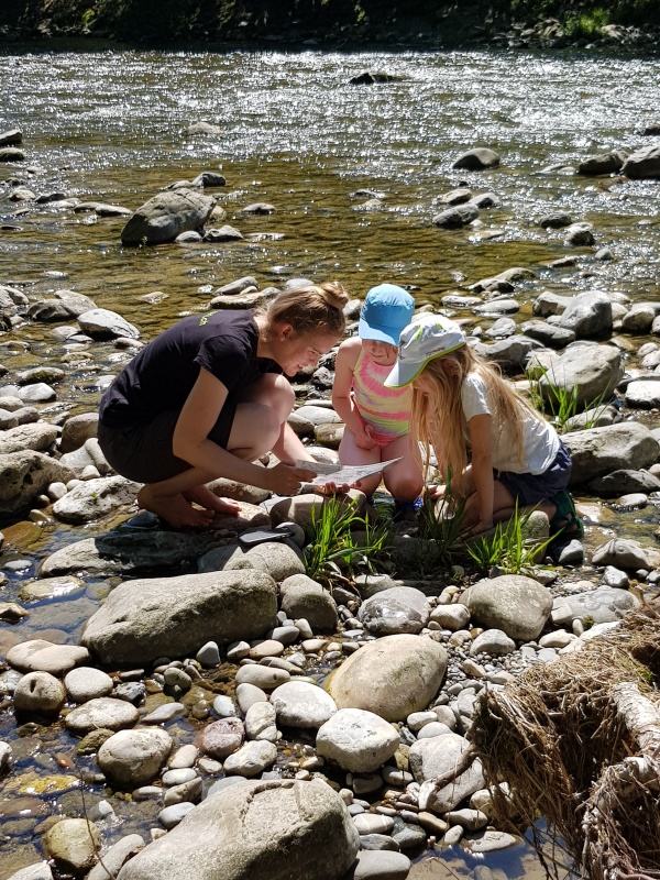 Bei Sonnenschein und sommerlich heissen 27 Grad bot es sich an, einmal zu schauen, wer so alles in unserem „Haus-Fluss“ lebt. Mit unseren Entdeckungen konnten wir die Wasserqualität der Sihl untersuchen. Schnell haben wir gemerkt, dass je nach Tiefe und Strömung des Wassers unterschiedliche Lebewesen zu finden sind. Unsere Schlussfolgerung: die Qualität des Sihlwassers ist gut bis sehr gut.