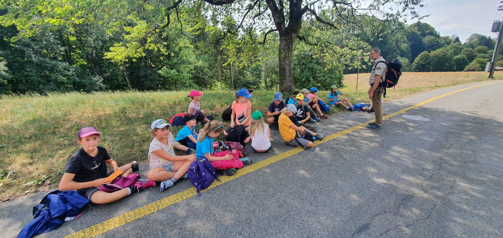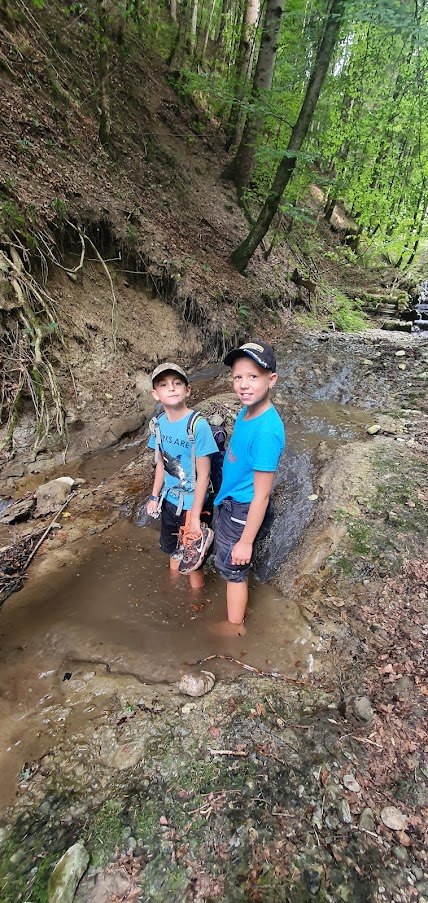 Viele Kinder waren das erste Mal bei diesem Wasserfall und fahren fast jeden Tag oberhalb an ihm vorbei- so gut ist er versteckt. Wir konnten gut die Sand- und Nagelfluhschichten anschauen und ein paar Millionen Jahre zurück blicken…