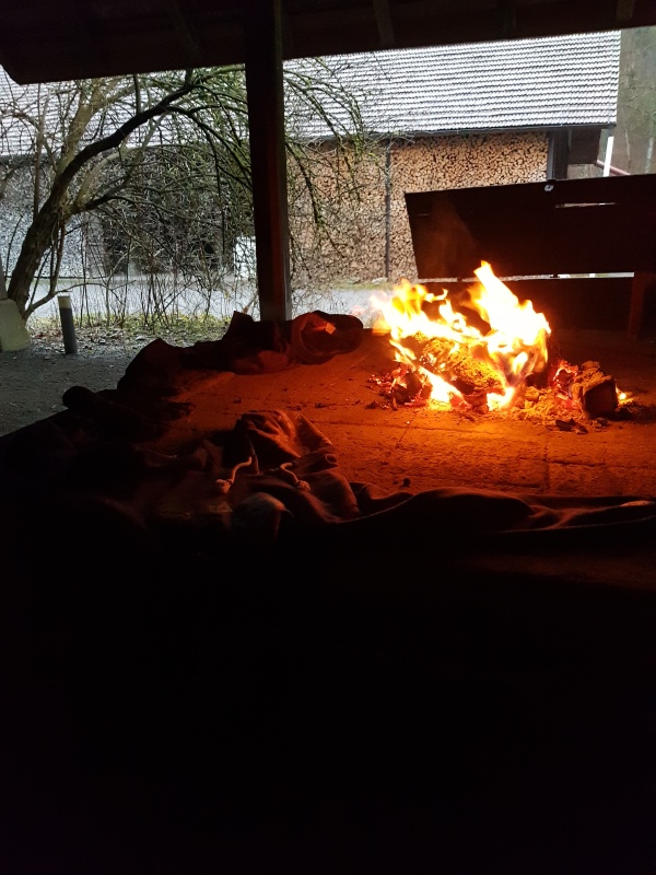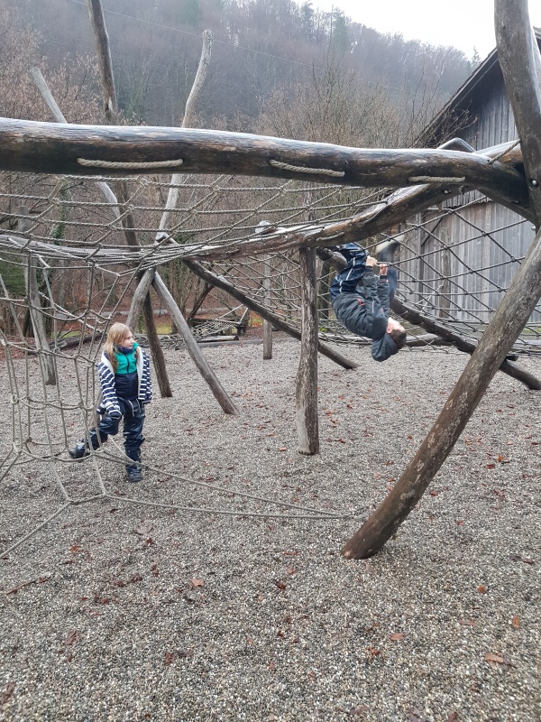 Unser Zivi hat uns ein wunderbares Feuer zum wärmen im Unterstand gemacht. Mit einer Stärkung im Bauch ging es zum 15,14 Spielen und auf den Spielplatz zum Klettern.