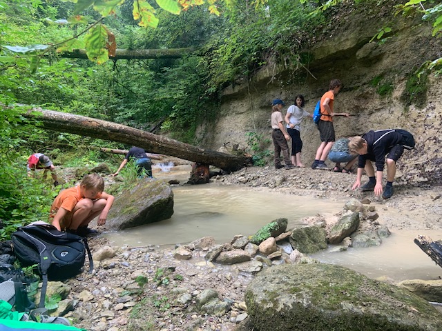 in der Zwischenzeit hat der andere Ranger einen Stau gefunden…der wurde genau untersucht, ob da wohl auch der Biber am Werk war?? wahrscheinlich eher nein, aber ein paar abgeknabberte Äste wurden von den Junior Rangern schon gesehen…