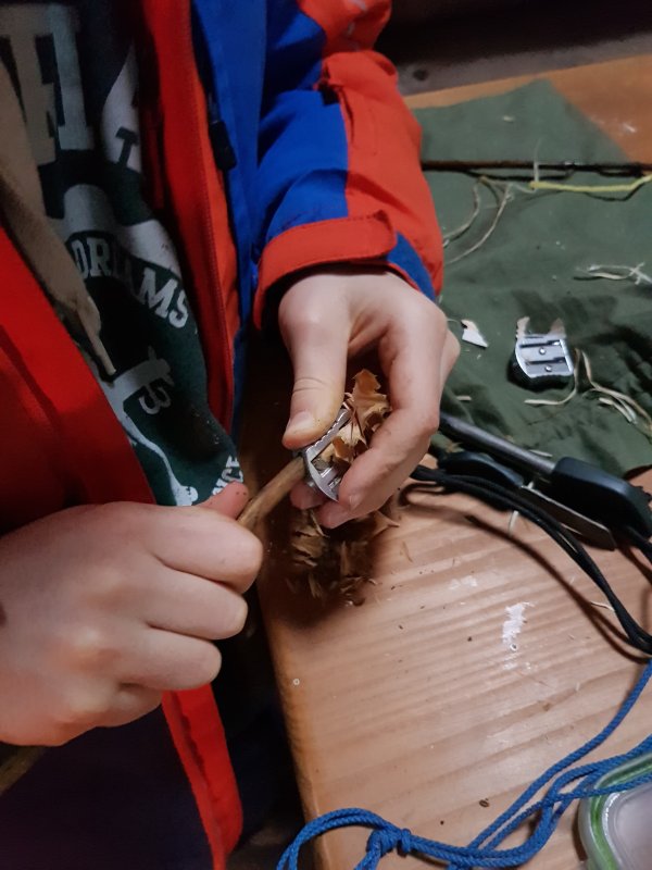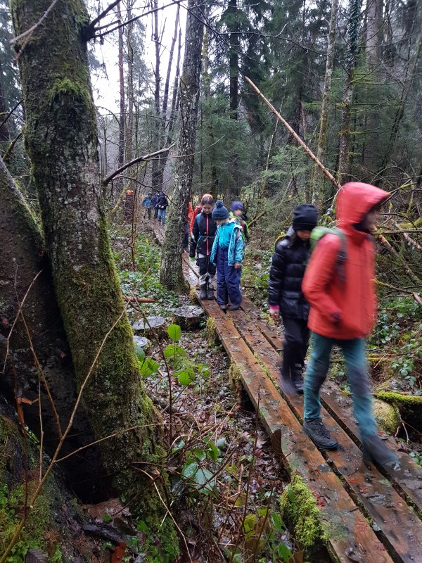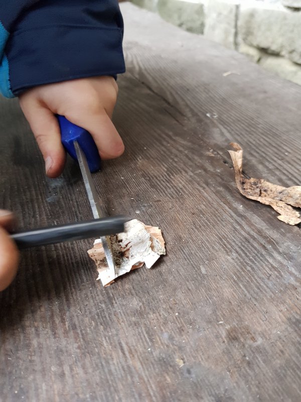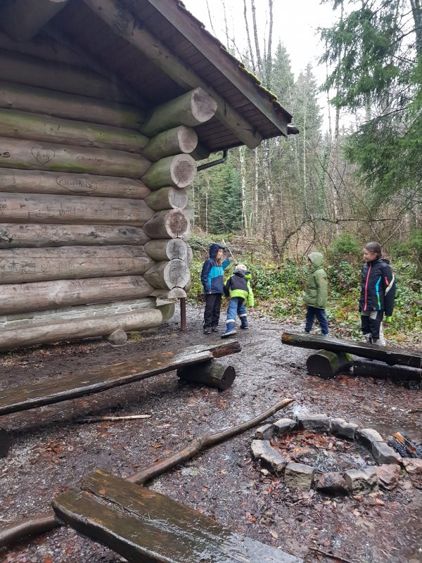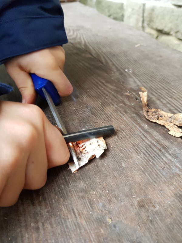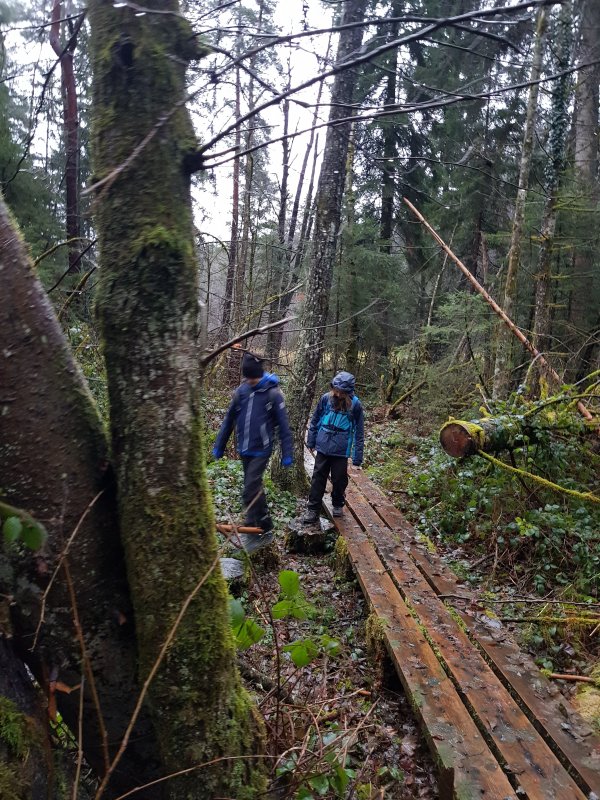 Wir haben Punch getrunken, gebrätelt, bei Regen, gespielt und versucht verschiedene Zunder mit dem Feuerstahl zu entzünden. Auf dem Rückweg sind wir über den Moorsteg gelaufen.
