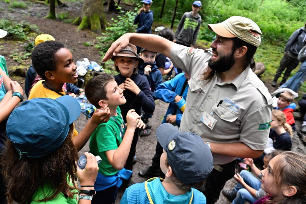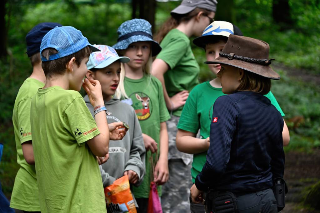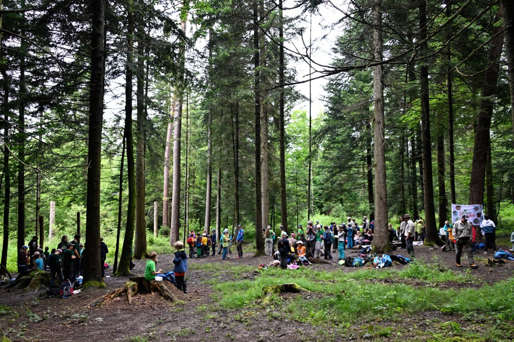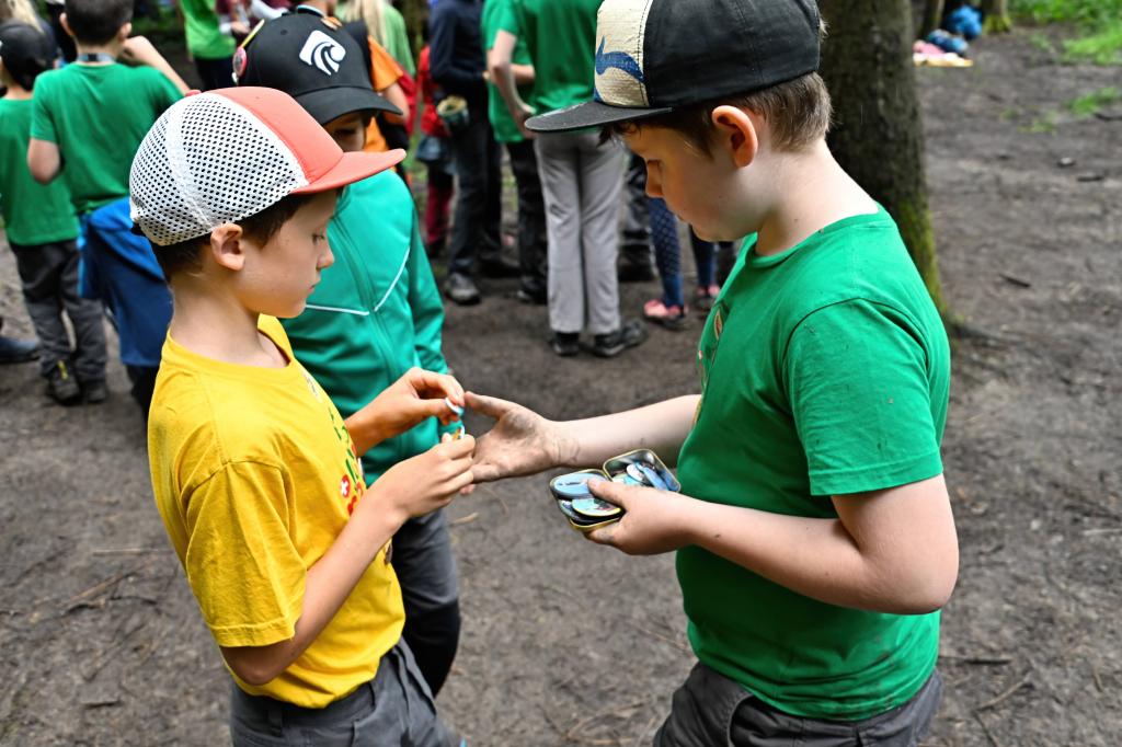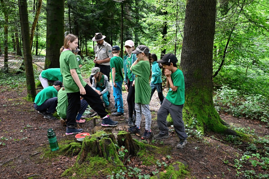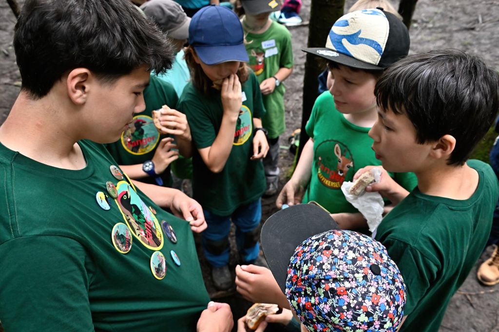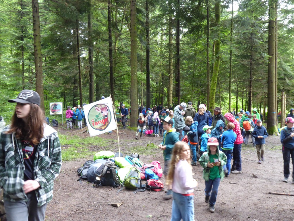 Im Zielgebiet gab es einen Kreativposten und genügend Zeit um sich untereinander auszutauschen, wobei das Tauschen von Buttons nicht fehlen durfte. Rumalbern stand hoch im Kurs, wie auch bei einigen wenigen Junior Ranger das entfachen eines Feuers unter mittlerweile regnerischen Bedingungen. Aber: Wir haben es geschafft!