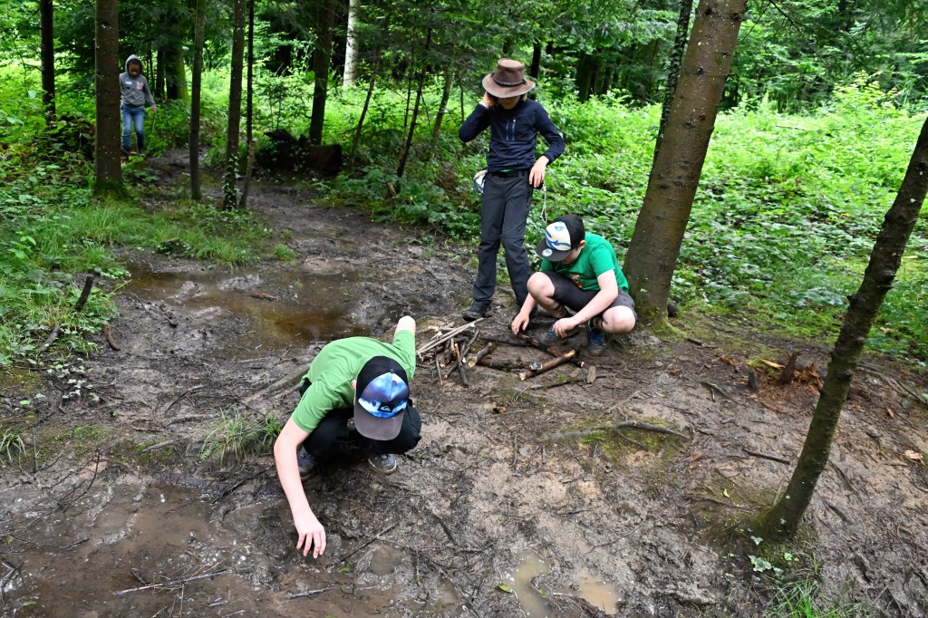 Über Stock und Stein ging es weiter zum nächsten Posten. Uns ist kein Hang zu Steil und kein Bach zu breit! 🙂