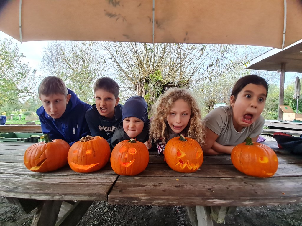 Nach einer Brätelpause ging es ans zweite Handwerk: Kürbischnitzen. Die Halloween-Kürbisse wurden zuerst ausgehöhlt.
