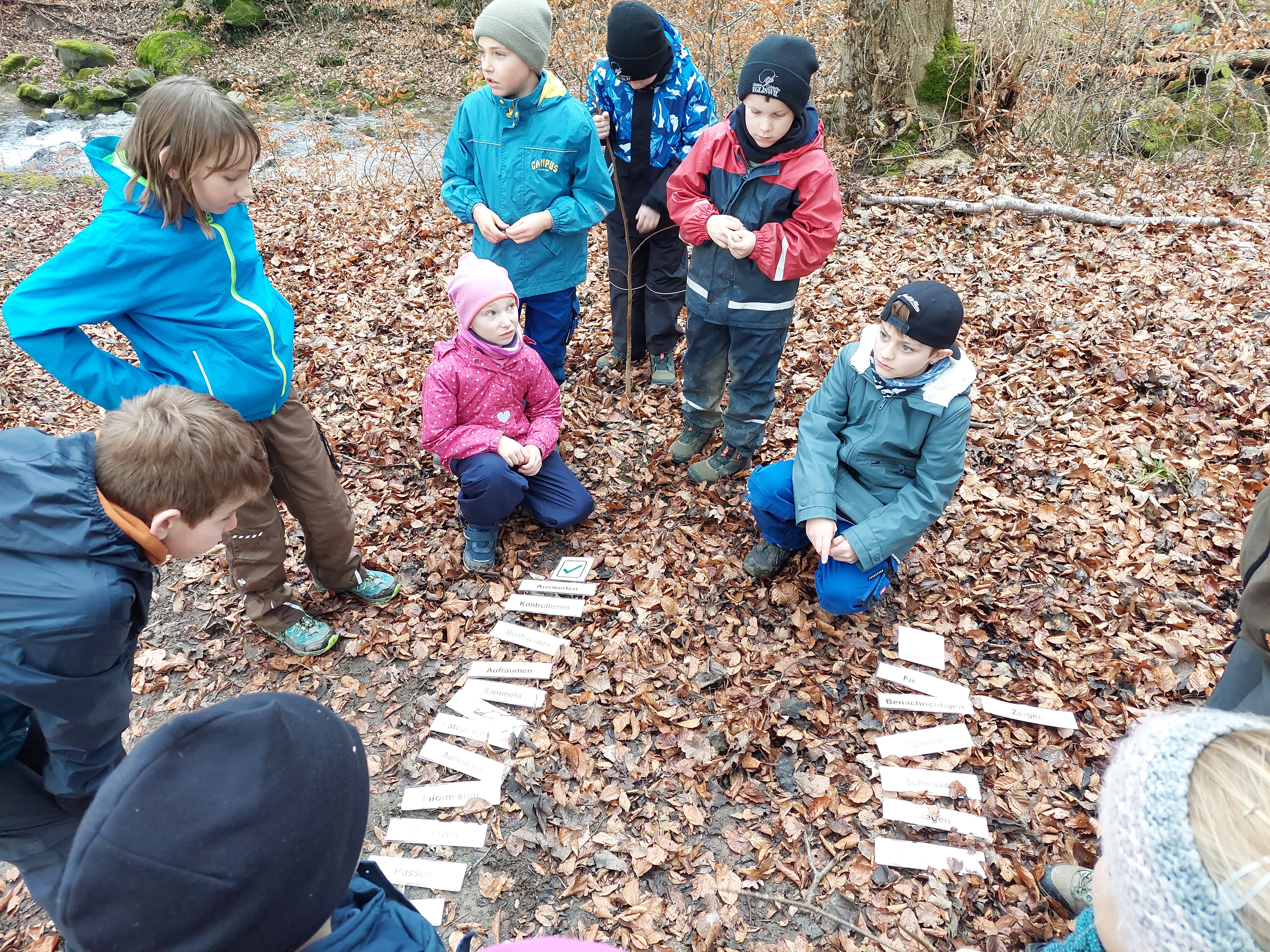 Mit der Gruppe 1 machen wir uns auf zum Thema was macht eigentlich ein Ranger? Viele Junior Ranger sind neu in der Gruppe und ist das Thema noch ganz neu. Zuerst orientieren wir uns wo wir sind, danach üben wir uns in der Weitsicht mit und ohne Feldstecher. Um das Auge auf die Nähe zu schulen sind einige Klämmerli entlang einer Schnur an den Bäumen und am Boden verteilet. Die Junior Ranger probierten alle zu finden. Diese Übung machte allen sehr Spass und kein Ende in Sicht bis alle mit vereinten Augen gefunden wurden.
