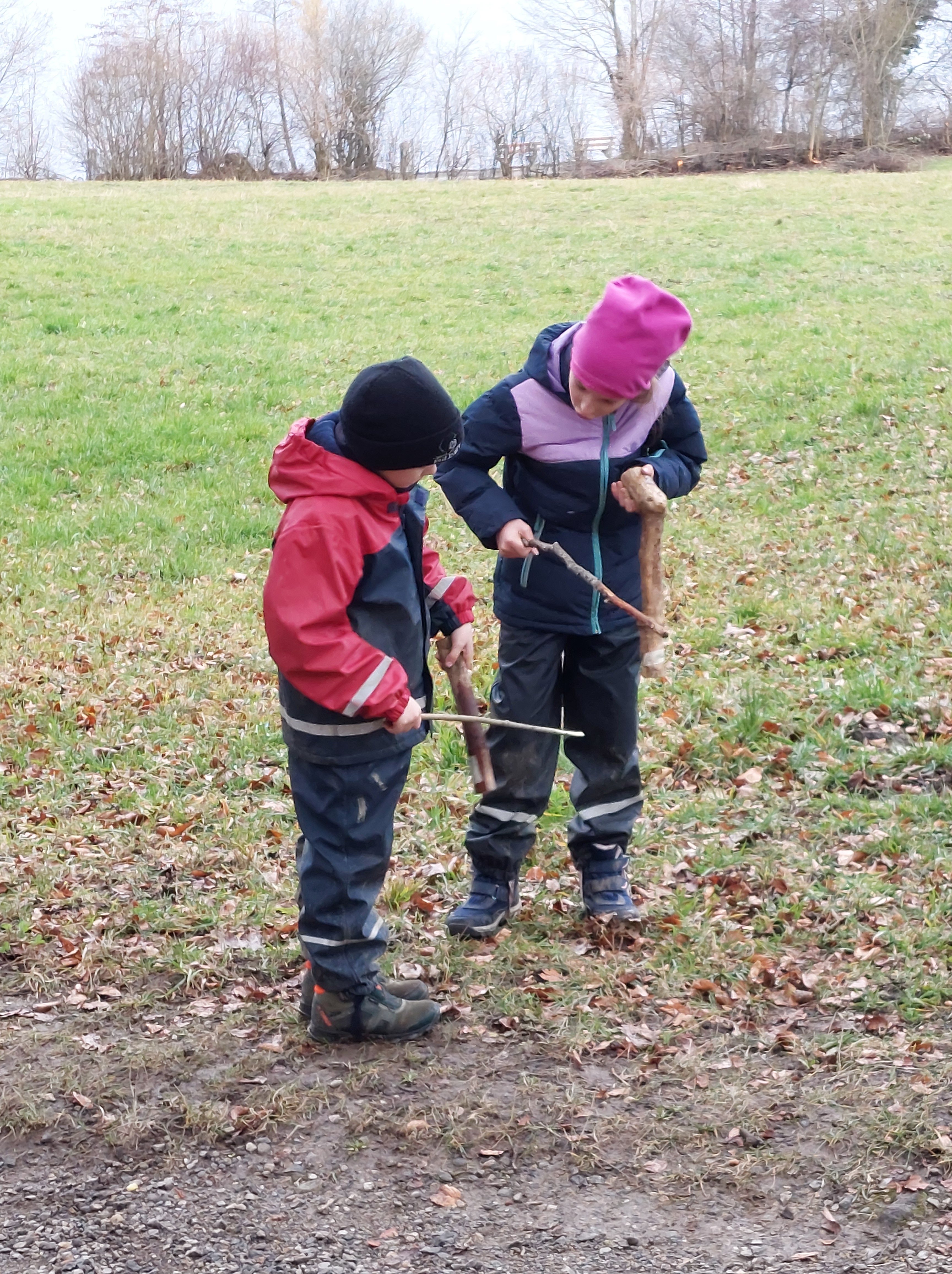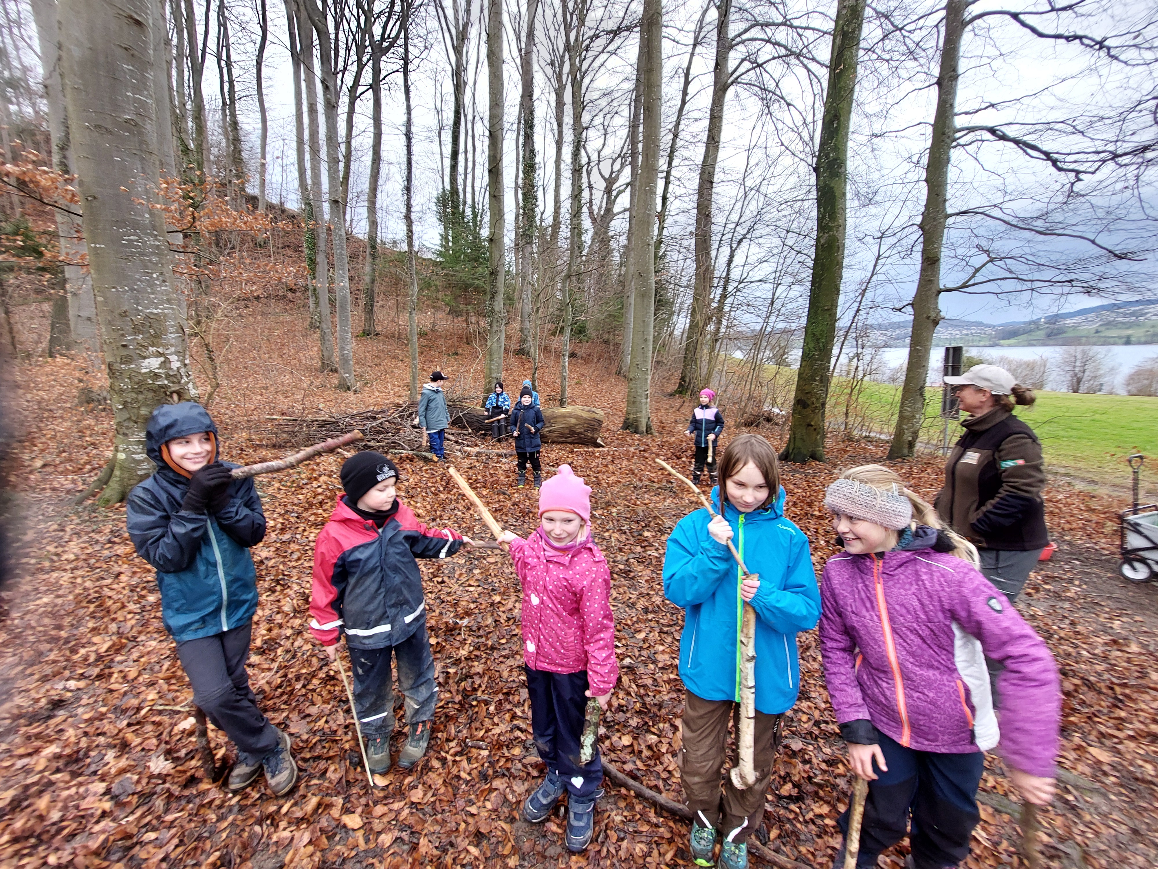 Nach dem Zvieri war Spiel und Bewegung angesagt. Anschliessend machten wir mit verschiedenen Hölzern ein Gehörduell. Immer zwei Kinder machten zusammen Musik und probierten sich den Klang des anderen Junior Ranger einzuprägen. Danach die Challenche, finde ich heraus wo mein Musikpgspänli hinter meinem Rücken Musik macht? Und wie tönen all die Vögel? Woher kommt ihr Gesang? Diesem Thema widmen wir uns ein anderes Mal. Die Ohren sind schon mal parat! Danach übten wir zusammen zu musizieren was doch schon sehr gut funktionierte und allen Spass machte.