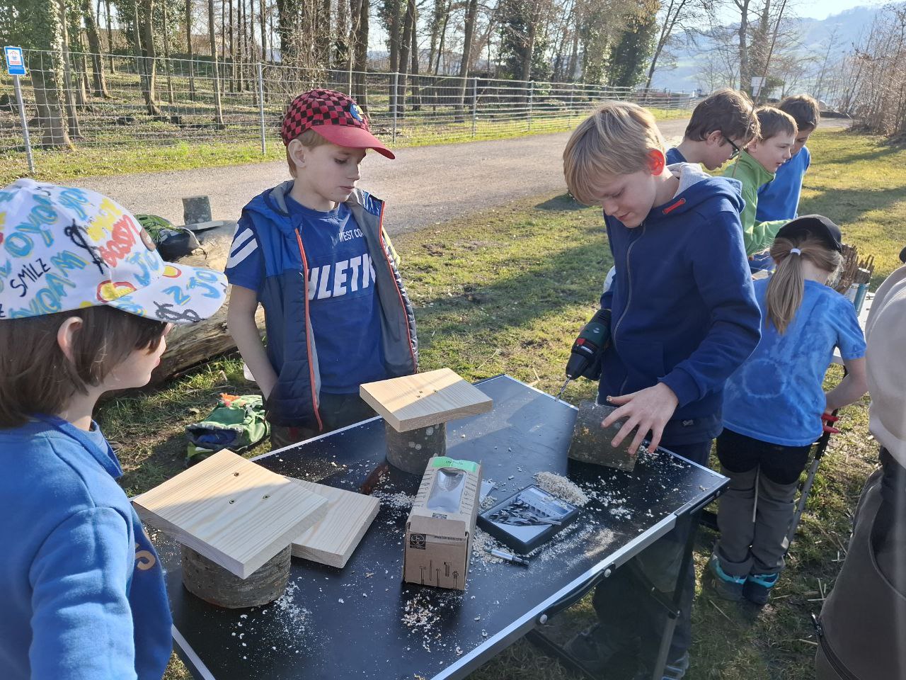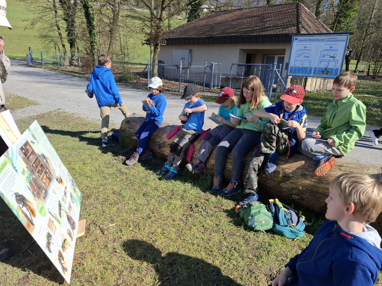 Mit unserer Gruppe 2 trafen wir uns am vergangenen Mittwoch 19.3. 2025. Unser Thema waren die Wildbienen. Die Junior Ranger lernten sehr viel über den Lebensraum der Wildbienen, die verschiedenen Arten und auch den Unterschied zwischen Honigbienen und Wildbienen. Wer von euch weiss ob alle Bienen stechen? Nur die Weibchen stechen. Und manche Arten haben einen sehr feinen Stachel welcher bei uns Menschen kaum durch die Haut sticht. Welche Hilfsmittel dienen den Wildbienen als Lebensraum? Welche eigenen sich, welche nicht? Wir lernten die vielen Materialien kennen und deren Vor und Nachteile.