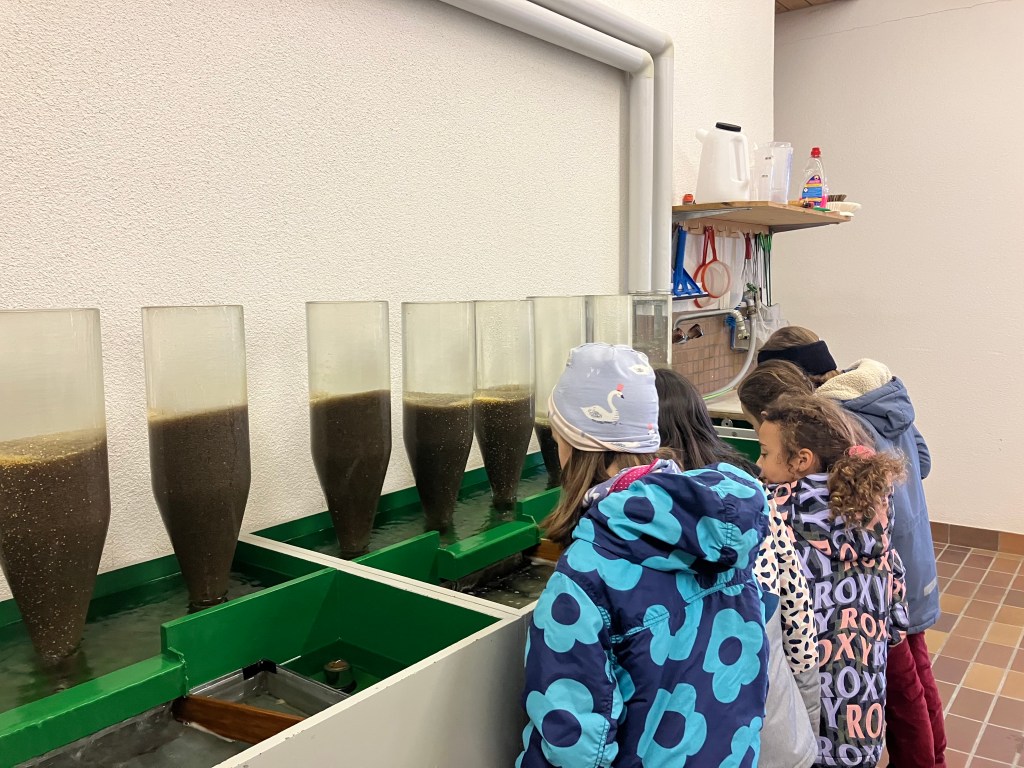Die Junior Ranger Gruppe Fuchs konnte die Fischzucht besuchen gehen. Denn jetzt ist das Schlüpfen der Felchen und Forellen aktuell. Der Fischereiaufseher Reto Kunz ermöglicht es, dass weiterhin Felchen im Pfäffikersee schwimmen. Die Felchen schlüpfen in der Fischzucht und werden dann in den See ausgesetzt. Unglaublich wie viele Eier da in den Gefässen sind!