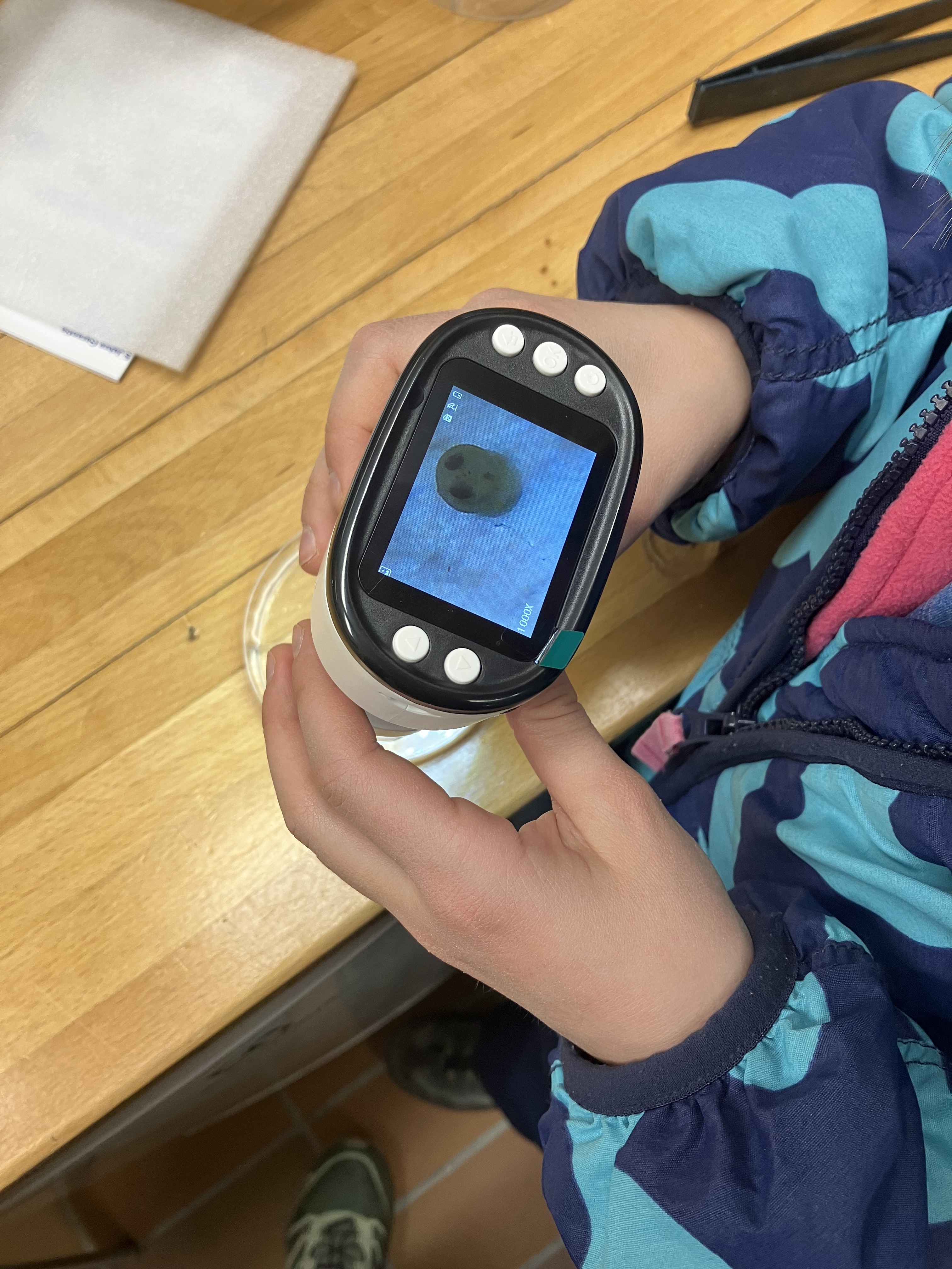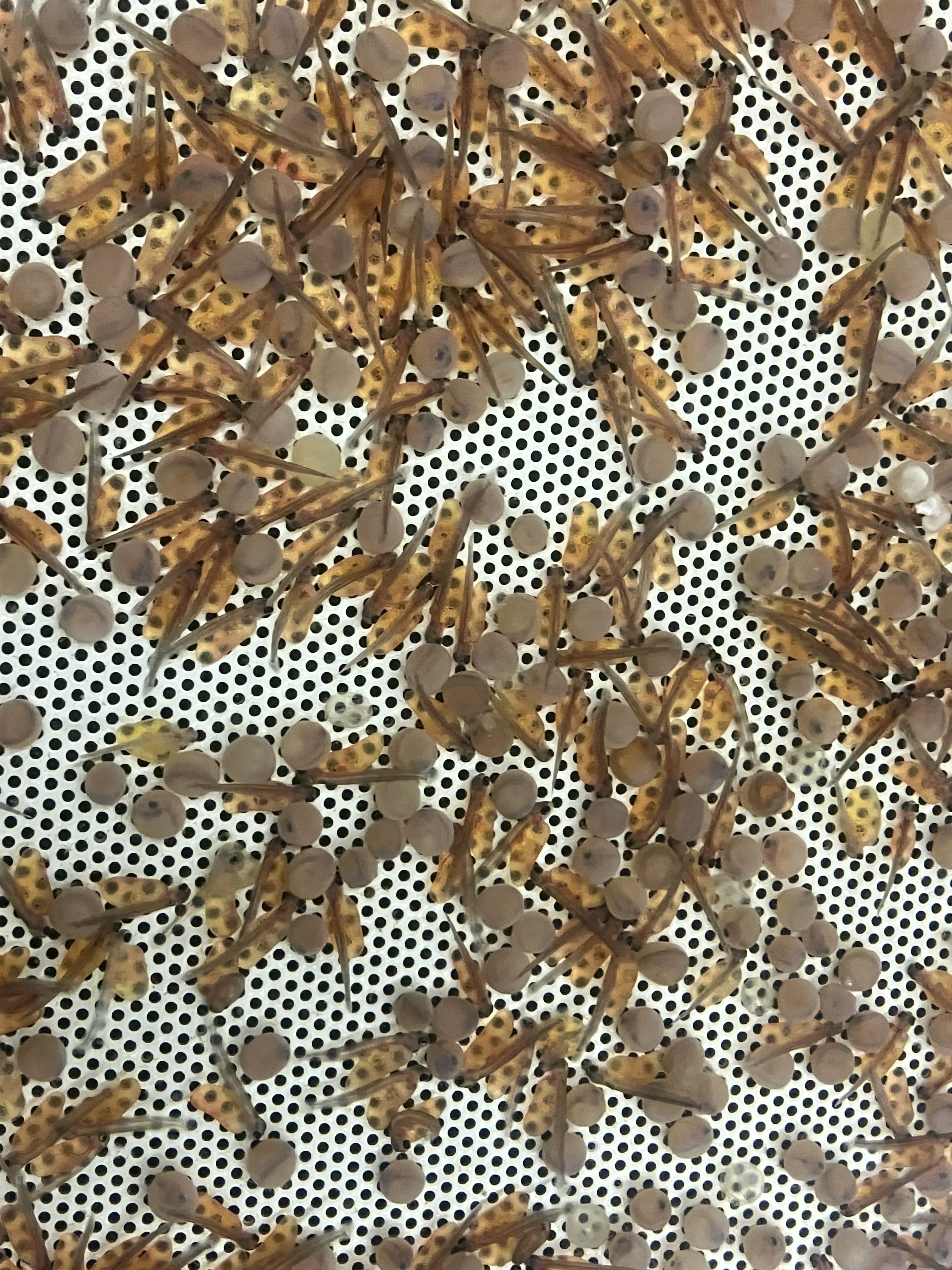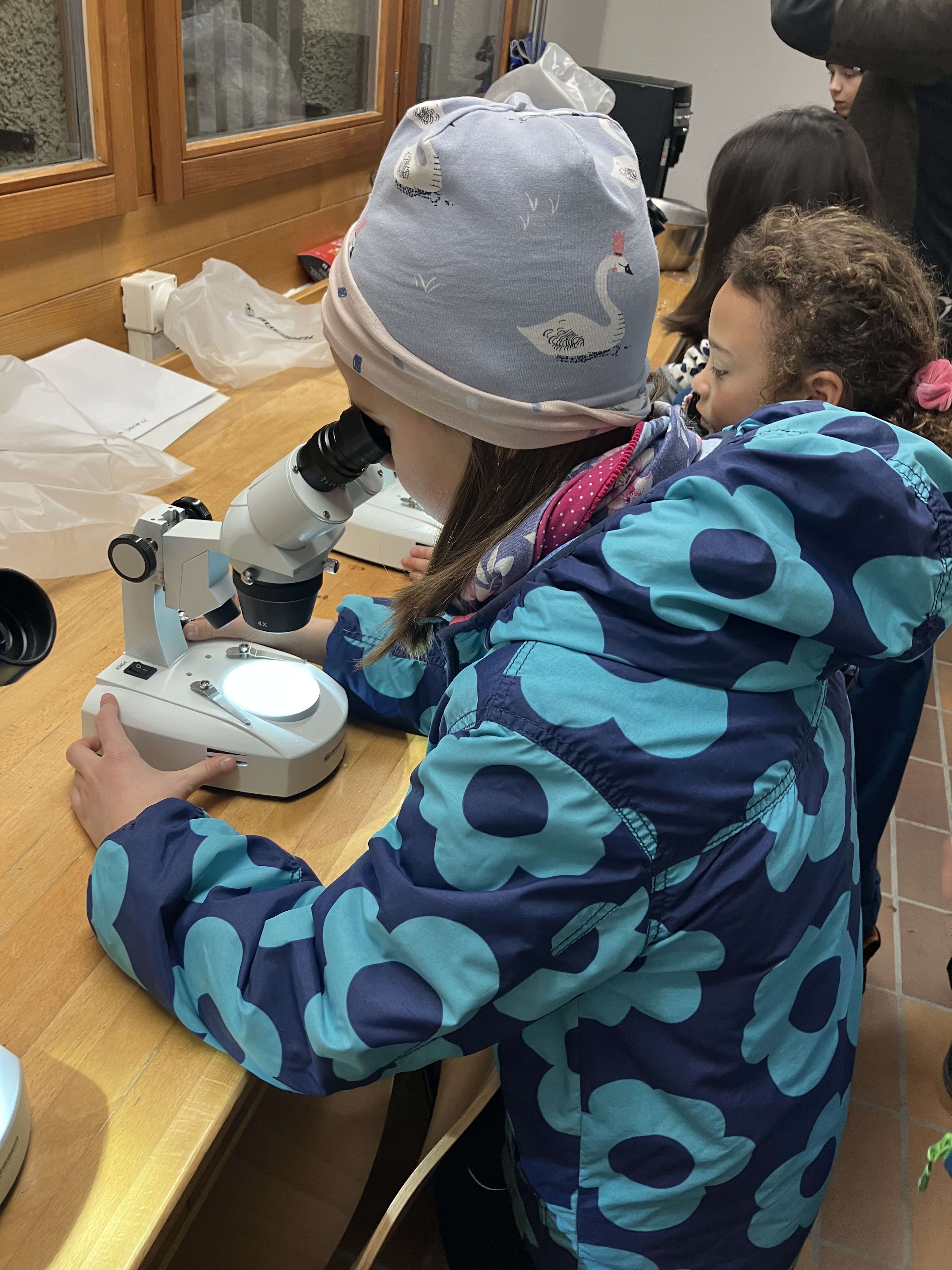 Neben den Felchen schlüpfen hier auch Forellen, welche wir super unter dem Mikroskop anschauen konnten. Schon erstaunlich, dass man bei den Eiern schon die Augen sieht und wenn sie geschlüpft sind ist das Herz und fliessende Blut zu sehen. Der Siamesische Zwilling wird leider nicht überleben, nur einer hat Augen, das Blut fliesst aber durch beide.