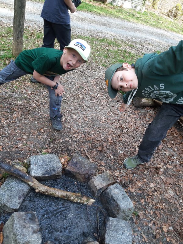 Am Schluss haben die Junior Ranger das Feuer so richtig gut gelöscht. Denn es gilt ja bereits Waldbrandgefahr Stufe 2.