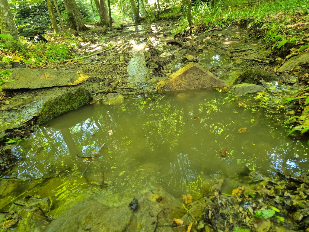 Wir haben verglichen, wie sich natürliche Flussläufe mit den vom Menschen eingepressten und eingedohlten Flüsse unterscheiden. Dazu mussten wir zunächst Wasser stauen, um dann das Wasser in etwa auf beide Seiten gleichmässig zu verteilen.