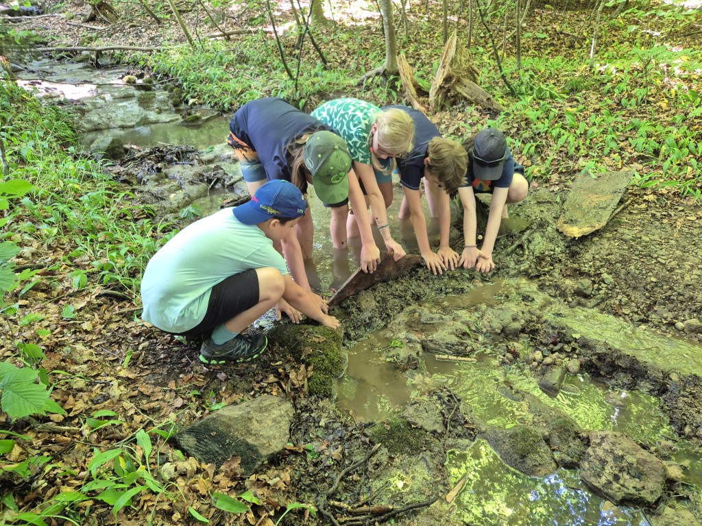 In den letzten Wochen haben wir uns mit Bach- und Flussläufen beschäftigt. Bei dem warmen Wetter haben wir uns viel im Bach herumgetrieben und geschaut wie der Mensch in die natürlichen Bach- und Flussläufe in den letzten Jahrhunderten eingegriffen hat, welche Folgen dies für die Natur und Umwelt hatte und wie wir gerade dabei sind Flüsse zu renaturieren.