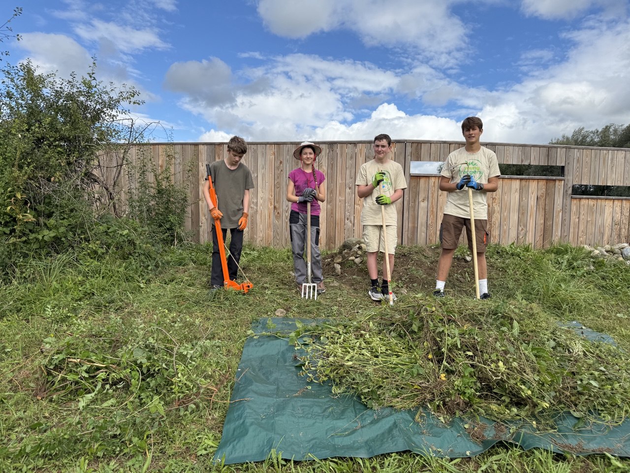 Am vergangenen Samstag 30. August 2025 trafen sich die Young Ranger für das Erstellen von Nisthilfen für die steilwandnistende Wildbiene im Ronfeld am Baldeggersee. Zuerst musste der Boden von Schwarzdornen und jede menge Wildreben freigemacht werden.