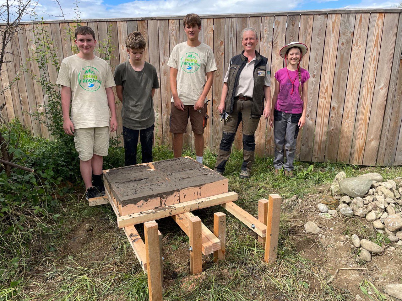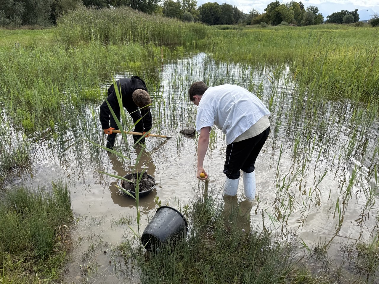 Während dieser Zeit schaufelten die anderen Young Ranger Lehm aus dem Teich. Das war eine Herausforderung. Immer wieder füllten sich die Gummistiefel!