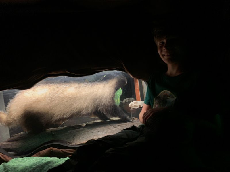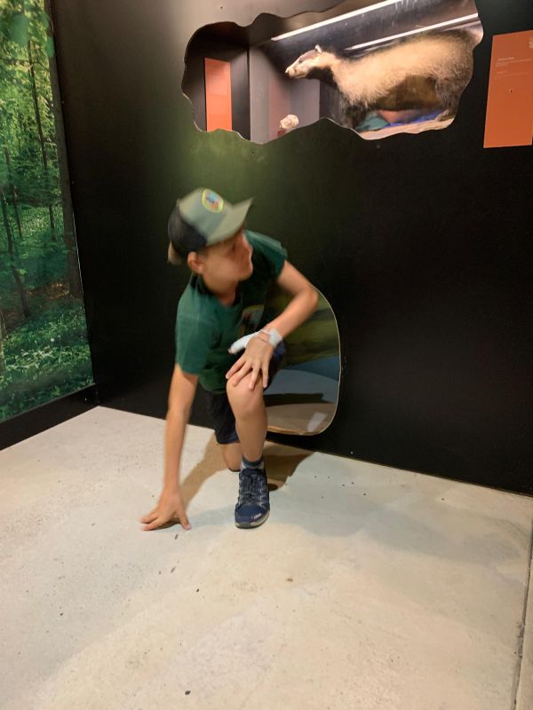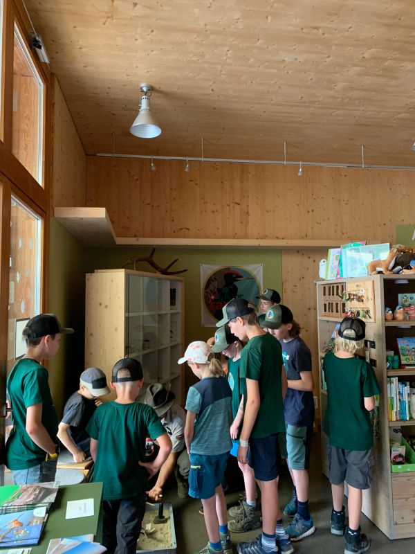 Wenn wir schon auf dem Areal vom Besucherzentrum sind, darf ein Besuch in der Sihlwald-Ausstellung nicht fehlen. Es machte schwupp und alle Junior Ranger waren in der Dachshöhle verschwunden. Strahlend wurde festgestellt, dass es jetzt noch einen Gang mehr zu entdecken gibt.