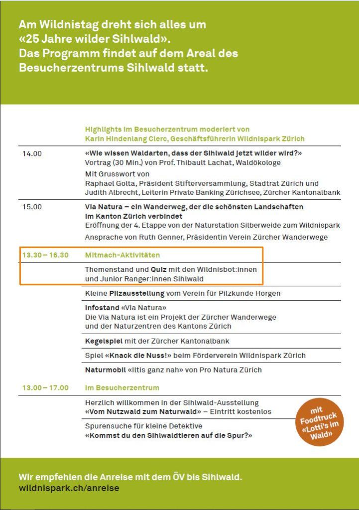 Wir sind gerüstet für den Wildnistag am Sonntag, 28. September. Wir würden uns freuen, wenn wir den einen oder anderen Junior Ranger bei uns am Stand begrüssen dürften!