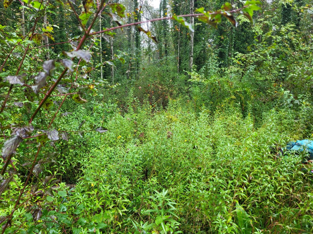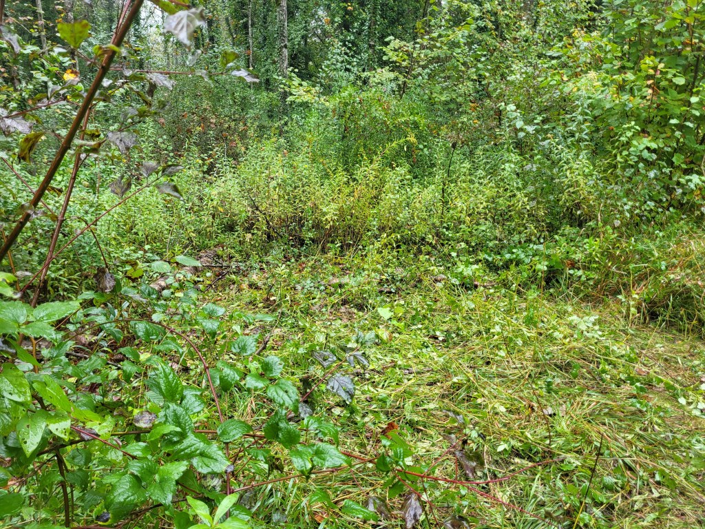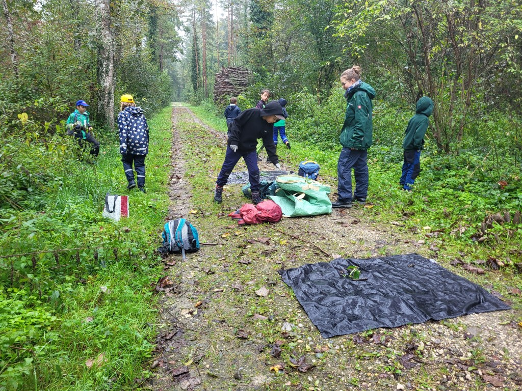 Der Höhepunkt war das Entfernen der Goldruten. Wir sammelten sie in grossen Säcken und entsorgten sie anschliessend fachgerecht. Auch der Regen hielt uns nicht auf – gute Laune geht eben immer vor!