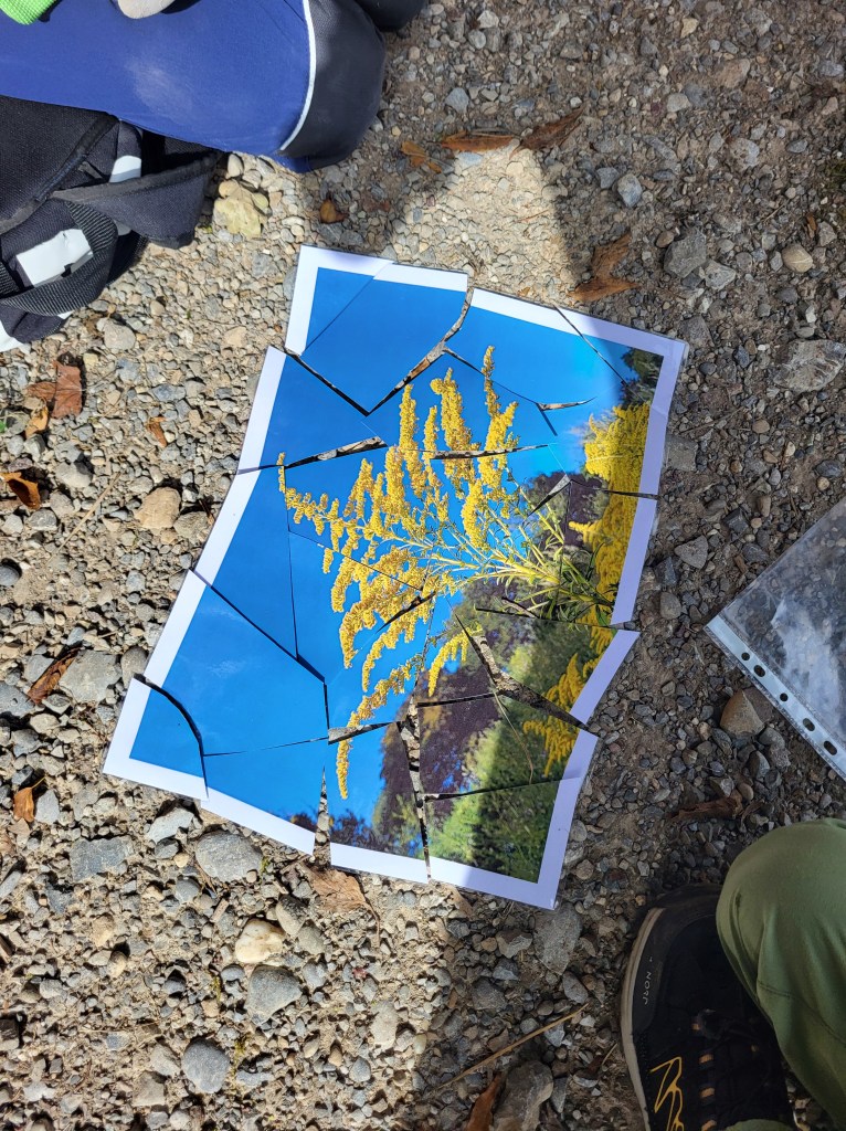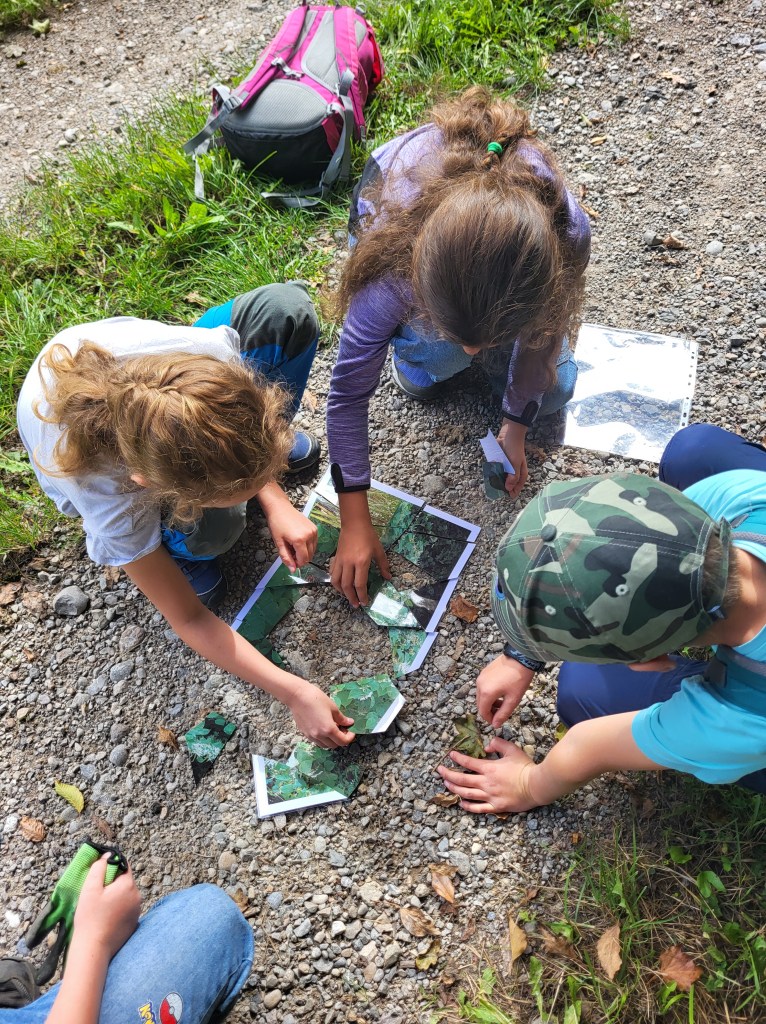 Zu Beginn gab es ein Puzzle zu lösen. Das fertige Resultat: Jeder hatte ein anderes Bild eines Neophyten und durfte erklären, was auf dem Bild zu sehen war und was an der Pflanze besonders auffällig aussah. Danach fragten wir uns: Warum können manche Pflanzen Probleme machen? Wir lernten, was «invasiv» bedeutet und wie manche Neophyten unsere Wälder und Wiesen verändern können. Wir sprachen darüber, woher sie kommen, seit wann es sie hier gibt und wie und wo sie sich vermehren und ausbreiten.