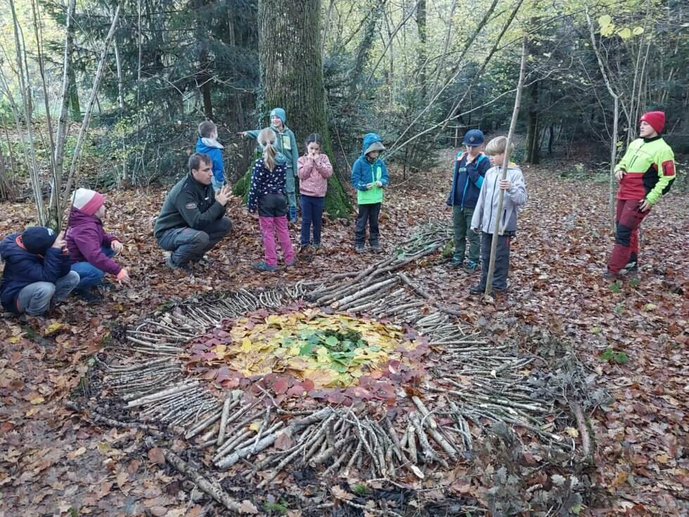 Danach ging es nochmals hinaus in den Brüelwald – diesmal mit viel Bewegung, Fantasie und einem kreativen Ziel: WaldArt! 🍁