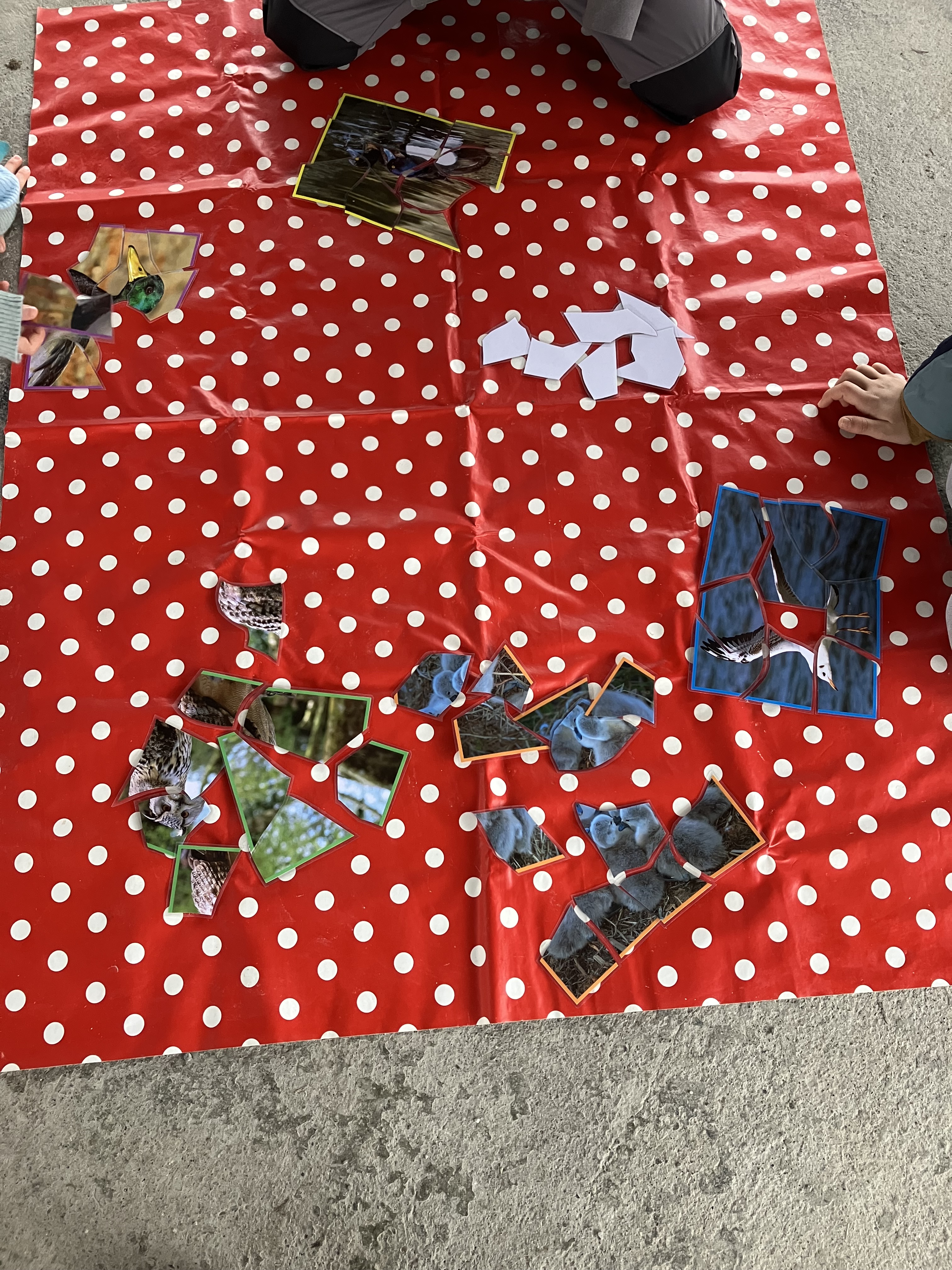 Die Vogelfedern wurden unter die Lupe genommen. Wir haben die Federfunktionen spielerisch kennengelernt -> Fliegen, Imprägnieren, Isolieren, Darstellen, Tarnen. Mittels einem Experiment haben wir gemerkt, dass Daunenfedern Wärme super gut speichern können. Natürlich hat auch eine Beobachtungstour mit dem Feldstecher nicht gefehlt. Damit das Beobachten und Entdecken von Vögeln noch spassiger war, haben wir ein Vogelbingo gespielt 🙂