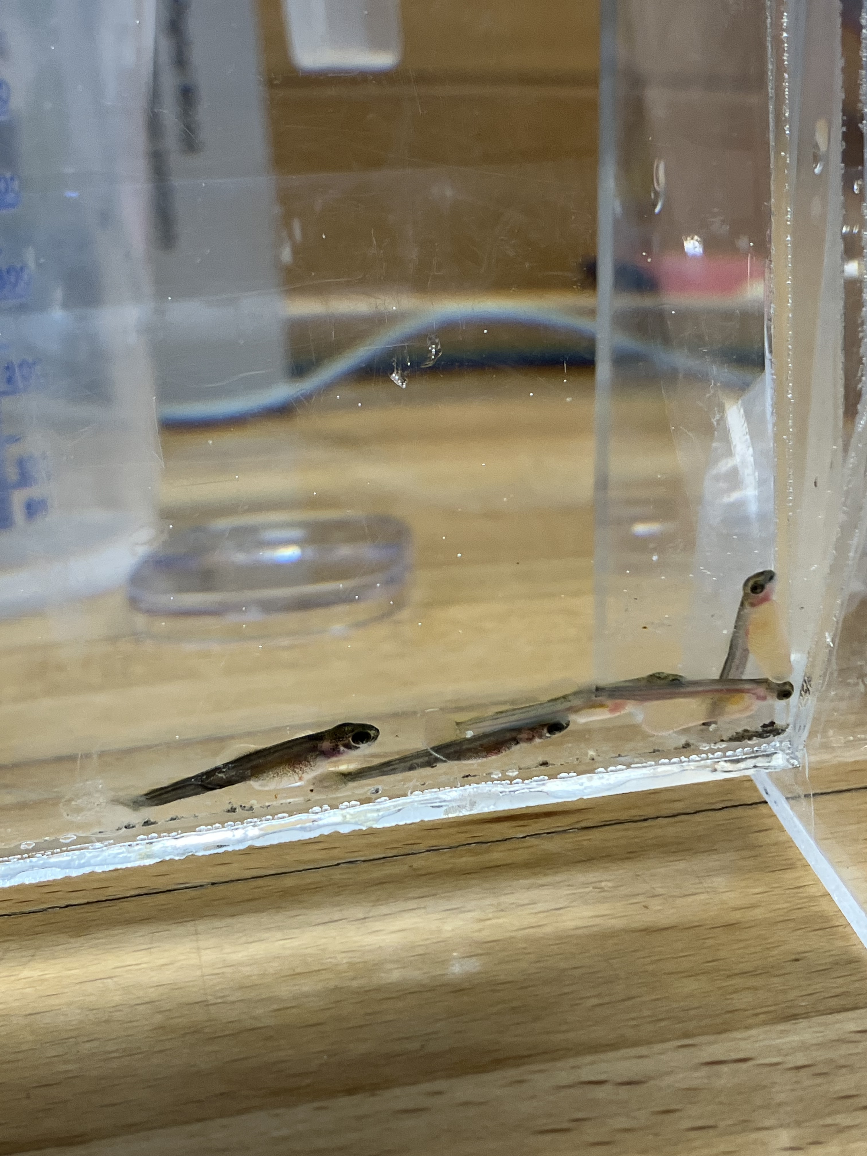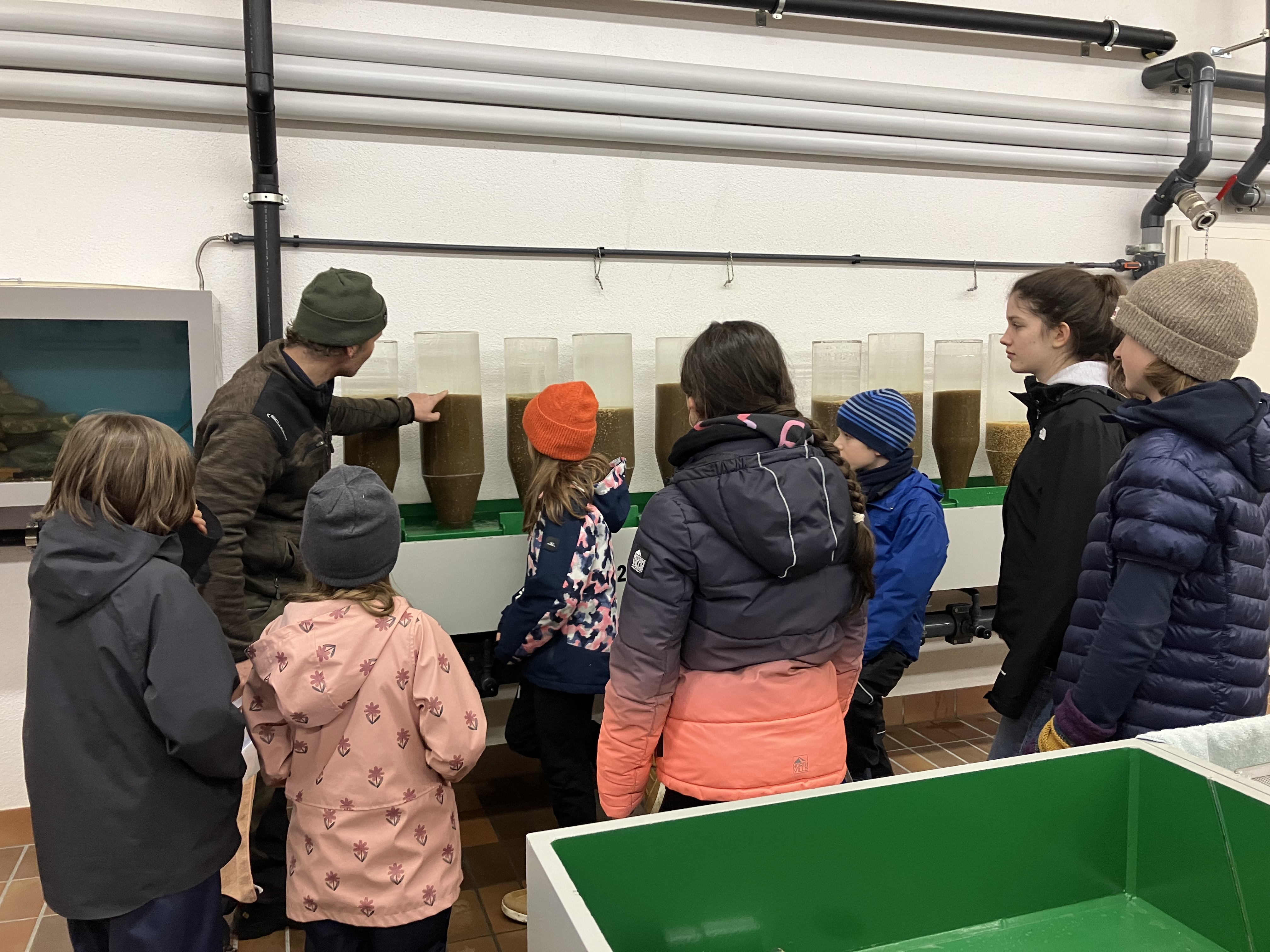 An einem Nachmittag hat uns eine JR Gruppe vom Greifensee besucht. Der Fischereiaufseher Reto hat sich für uns Zeit genommen und uns die Fischzucht gezeigt. Er ermöglicht es, den Felchen- und Forellenbestand aufrechtzuerhalten. Die Felchen werden im Pfäffiker- und Greifensee ausgesetzt, damit sie weiterhin in den Seen bestehen bleiben. Es war super spannend Fischeier und Babyfische unter die Lupe zu nehmen und schon sehr eindrücklich, wie viele Fischeier sich in diesen Gläsern befinden!