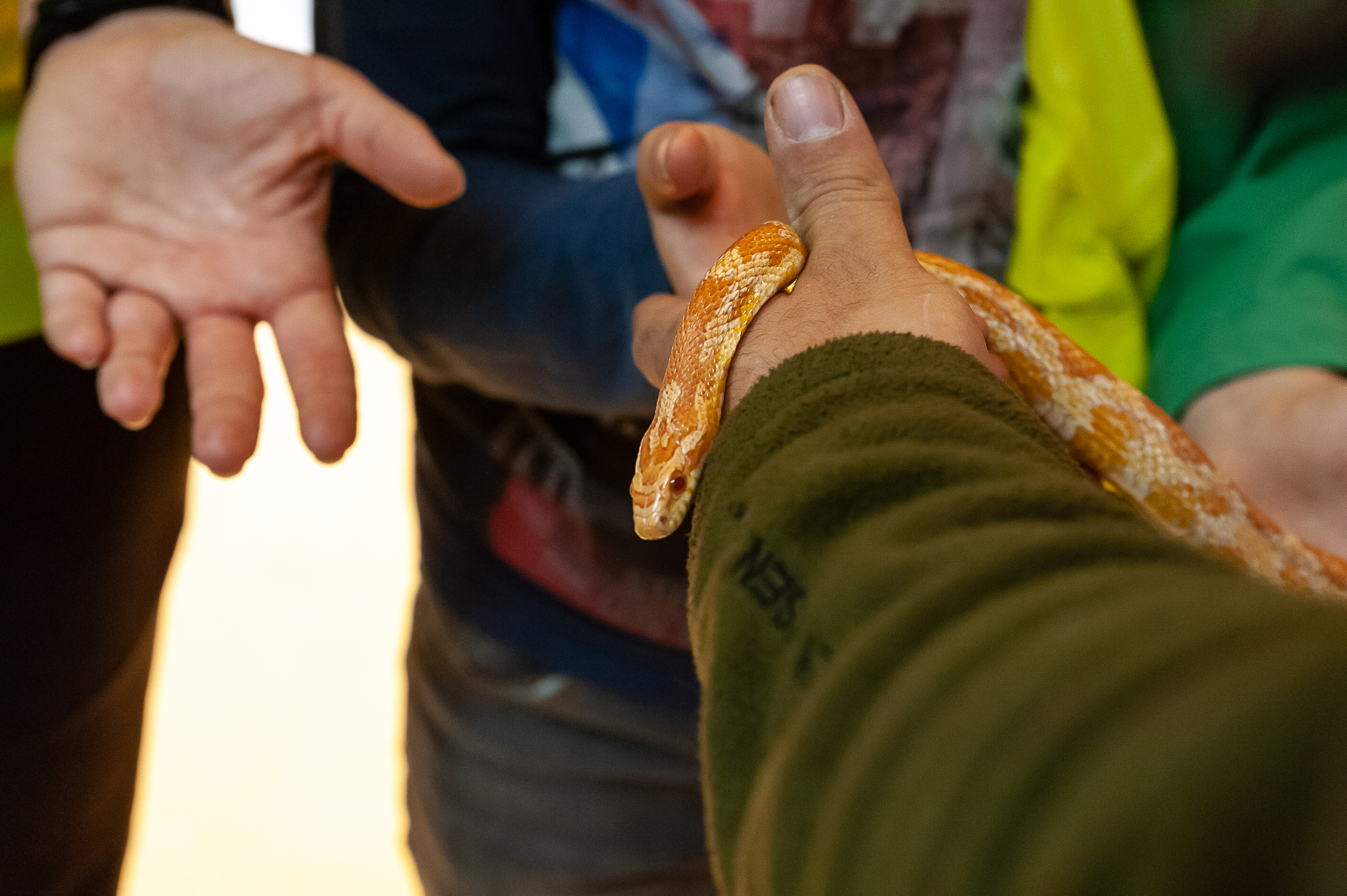 Kornnatter-7539 Published 22. Mai 2019 at 4256 × 2832 Die Junior-Ranger des Natur- und Tierparks Goldau lassen unter Anleitung eine Kornnatter über ihre Hände gleiten.