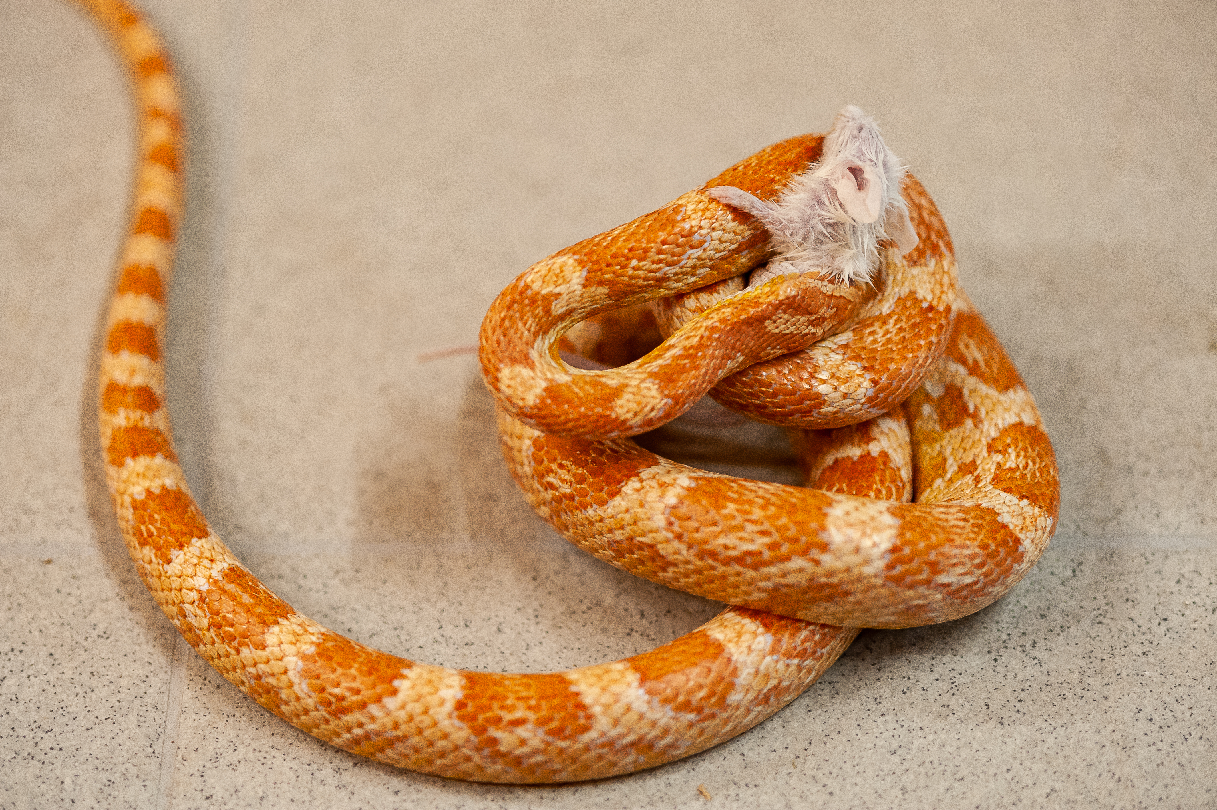 Kornnatter-7564 Published 22. Mai 2019 at 4256 × 2832 Eine Kornnatter verschlingt eine Maus in der Auffangstation im Natur- und Tierpark Goldau.