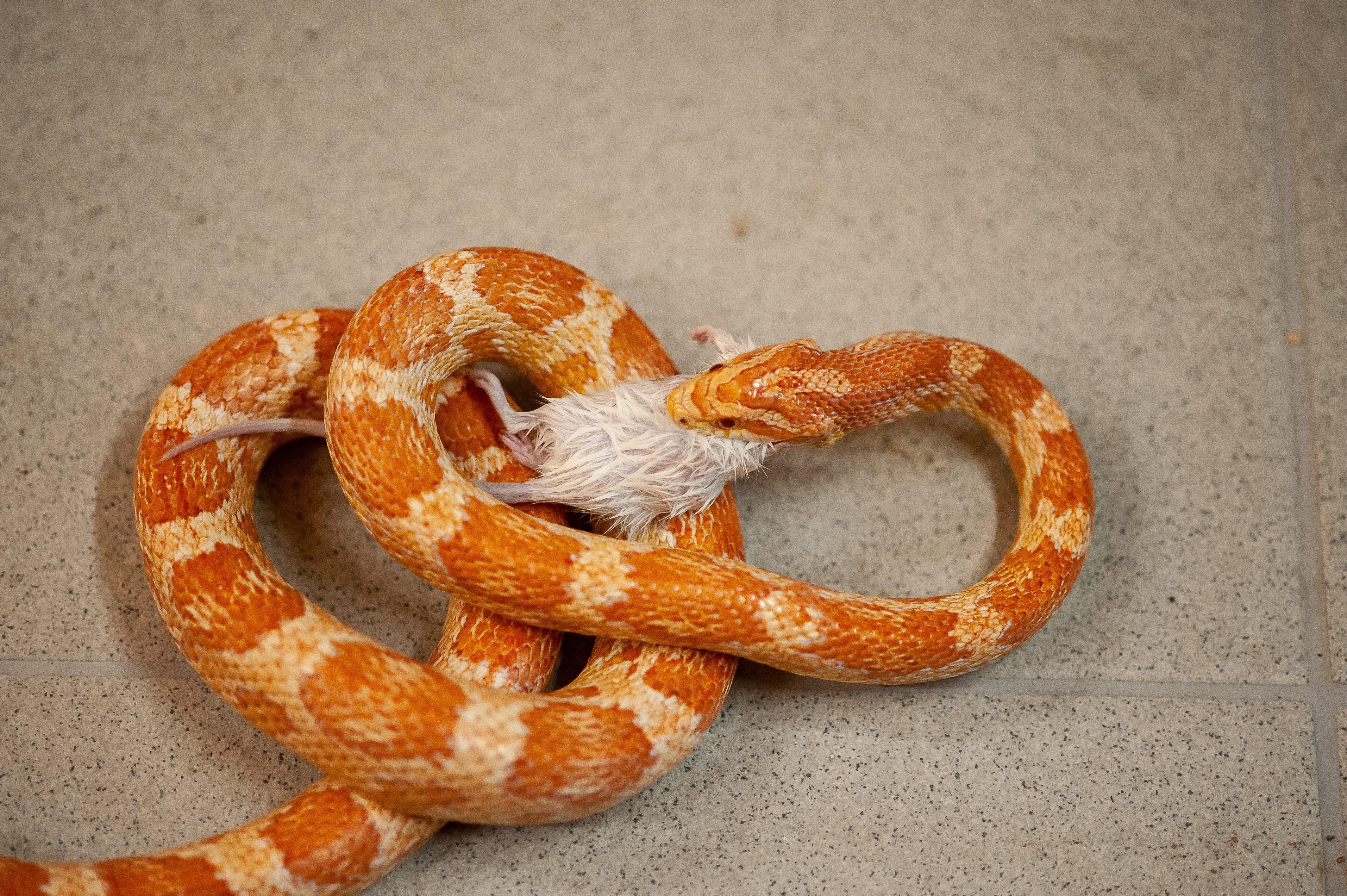 Kornnatter-7572 Published 22. Mai 2019 at 4256 × 2832 Eine Kornnatter verschlingt eine Maus in der Auffangstation im Natur- und Tierpark Goldau.